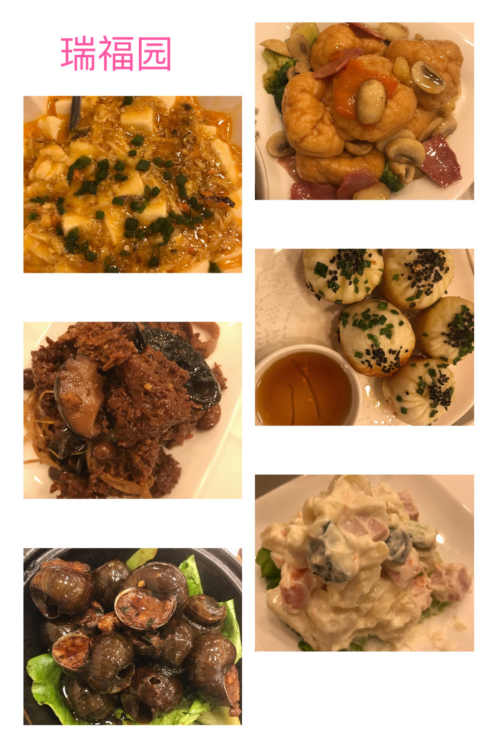晚餐,去了闺蜜团推荐的另一个餐厅----瑞福园联谊餐厅。吸取昨天的教训,打电话订位。七点多到了,还是小等了一会儿。直接点了几个预想好的菜:田螺塞肉、蟹粉豆腐、面筋、四季烤麸、沙拉、蟹粉生煎包,满满一桌,一直惦记的糖醋小排,据说早就卖完了。吃撑了的晚餐,慰劳一下辛苦了一天的老人家们。