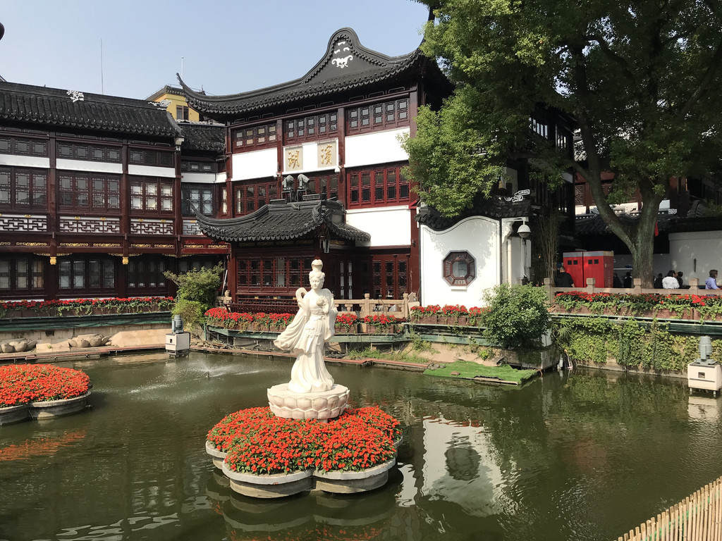 豫园是整个游览区闹中取静的所在。没有了商业店铺的市井繁华,是一处江南水乡特色的园林,修建于明代嘉靖、万历年间,至今已有四五百年的历史了。园内亭台楼阁,假山真石相伴相间,顺着回廊蜿蜒环绕,林木苍翠,池水碧绿幽深。