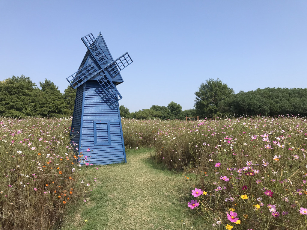 湿地滩涂中,由各色鲜花摆放的花坛鲜艳夺目,池中,荷叶绿葱葱的,可惜荷花已经败落。电瓶车带着我们到达景区深处,我们顺着栈道往里走,两旁的格桑花娇艳欲滴,走进百花深处,怎么拍都是靓照。花丛中的风车小木屋,带来童话的向往。池边,有圈养的鸭、鹅,嗷嗷地叫,为美景增添了生机。东滩湿地公园是候鸟迁徙的必经之路,也是水禽的越冬地,景区随处可见赏鸟、摄影提示,可惜,我们来的季节并不适合。