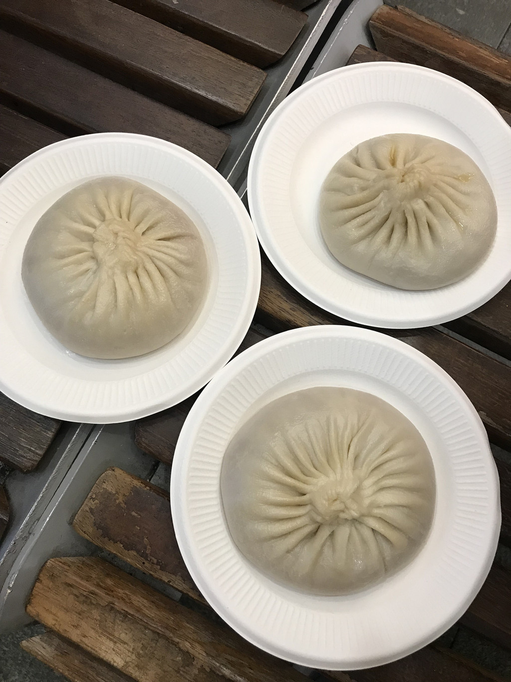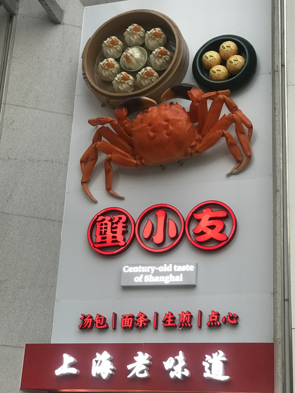 绿波廊的灌汤大包,二十五元一只的价格不菲,排队的队伍却时长时短,源源不断。比手掌大的包子软软的,盛在盘子里,小心翼翼地端着盘子走,皮薄薄的,里面汤汁在随着走路的步伐摇摇摆摆,好似随时要找机会迸出来。我们幸运地在附近找到了一个长椅,坐下来踏踏实实吃。之前看攻略的时候,人挨人的站着吃、蹲着吃,看来还是淡季好啊!吃的时候也要相当讲究,先用吸管在包子上挑开一个小洞,散散里面的热气,汤汁会顺着小孔流到盘子里一些,盘子一定要端稳,否则会顺着薄薄的纸盘流淌下来,满地都是,周边满地的油渍就是提示。喝完汤汁,已经没有什么馅料,皮囊没什么好吃的了,看在包子好贵的份子上,不能浪费。已近中午,我们想在绿波廊午餐,进餐厅的队伍,从饭店门口排出了一条带拐弯的长队,果断放弃。转过几间商铺,我们来到了南翔小笼包排队的队伍前,近二十年来,为数不多的依稀记忆,就是在这个转角处排队买小笼包。买好了两屉,打包回酒店休息。
