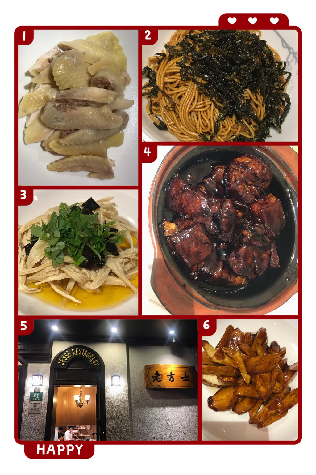 闺蜜团推荐的餐馆“老吉士”就在武康大楼附近,我们游览过武康路,正好来这里晚餐休息。算计着五点多到餐馆,应该不用提前订位吧,我们到时,透过不大的门脸儿,已经看到里面密密麻麻的坐了好几桌,引位的人考虑了一下,让我们上二楼去用餐,还提示我们抓紧点时间吃。餐厅里面空间狭窄,灯光昏暗,楼梯又陡又窄,桌挨着桌,椅挨着椅的,已经坐满了人,只有楼梯口正对着一张小桌还为我们留着,别无选择。除了必点的吉士红烧肉,我们还点了吉士咸鸡、油焖茭白和腐竹炝蘑菇,主食葱油拌面。红烧肉太甜腻了,尝一两块尚可;咸鸡真是名副其实,太咸了。菜品充分体现了上海本帮菜“浓油赤酱”的特点。初来大上海,总要尝尝被本地人推荐,入选上海必吃榜的正宗的上海本帮菜馆。价格小贵。