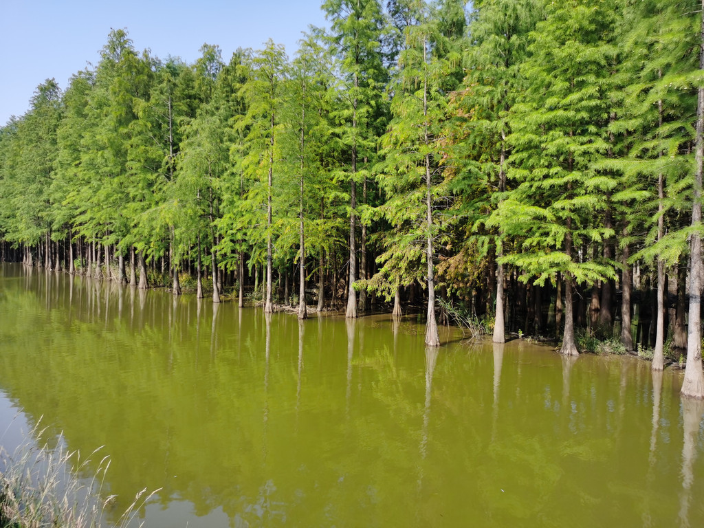 走进东平森林公园,再一次加深了对崇明岛景区的第一感觉,好大啊!从各个方向望去,都是一望无际的美景和空无一人的小路。我们决定就顺着进入的大门,挑选附近的一小块区域游览。