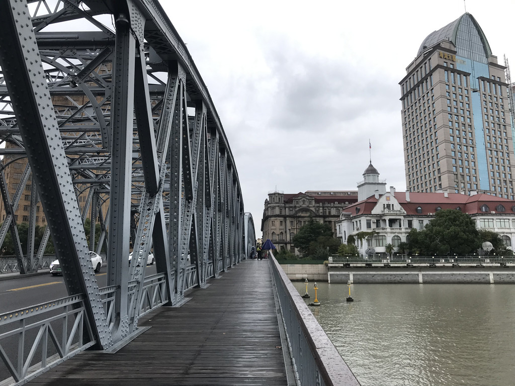 走过外白渡桥,找到闺蜜团来游玩时照相的地方,取景打卡。没有对比就没有伤害,暑假的蓝天白云出片确实是太漂亮了。外白渡桥并不长,不过百米左右,全钢的银白色桥体,已有百年历史,也是之前电影、电视剧常用的取景地。横穿过外白渡桥,走到外滩源区域,顺着小巷往回走,见证历史的异域风情古迹随处可见,浑厚而深沉,坚韧而典雅。回家后,老公曾问我,此行印象最深的是什么,我说:“是上海的老建筑,看不够,让人心能静下来。”对于热爱山水自然风光的我,自己也没有想到是这个答案。