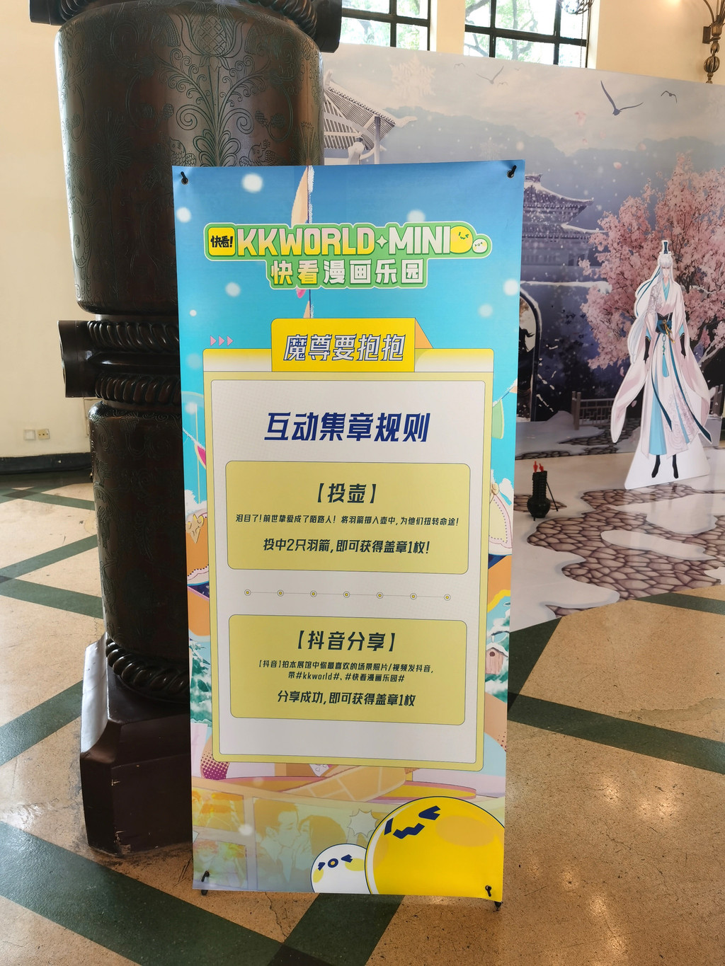 图14:用“弓箭”射中铜锣的靶心,可获得盖章