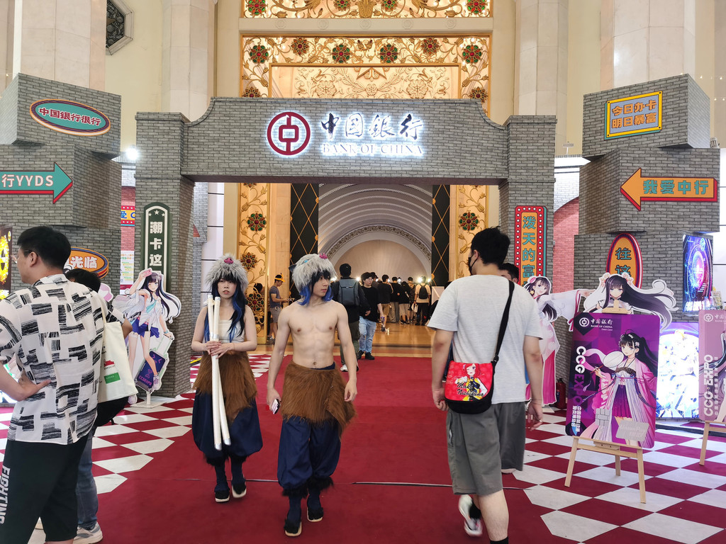 图8:“中国银行”前的COSPLAY者