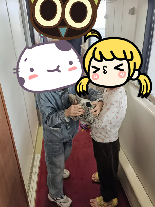 火车上我遇到了一位小女孩儿,她父母也在上海,这次是她的姥姥姥爷陪她到上海看爸爸妈妈,还要去看看眼睛。寂寞的旅途遇到一个玩伴真是太快乐了,我不知道如何表达我的心情,把我的儿子考拉给她玩儿,还把我的小天才手表戴在了她的手脖上,姥姥看见了连忙说还是拿回来吧,下了火车要是忘了拿回来,我们可再见不到她啦,要不回来啦!天哪,大人们可真小气!