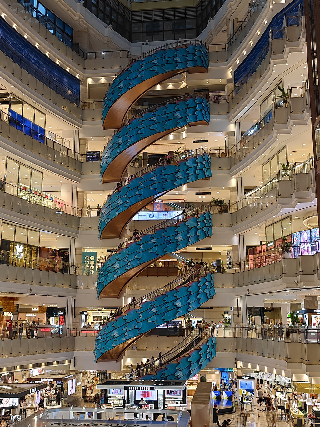 那么继续找浦东美术馆吧,还是骑车,几分钟就到了。一进大厅就非常有艺术气息,每一层的展览都特别好看,而且几个网红打卡拍照的地方都能如愿,挺好。我们在这里参观了每一层,拍照了很多满意的照片,其中在三层的一个窗口,还能近距离拍东方明珠,不少人在此排队。其实,去浦东美术馆的天台,拍两岸风景更好,有很多景都可以尽情选取。