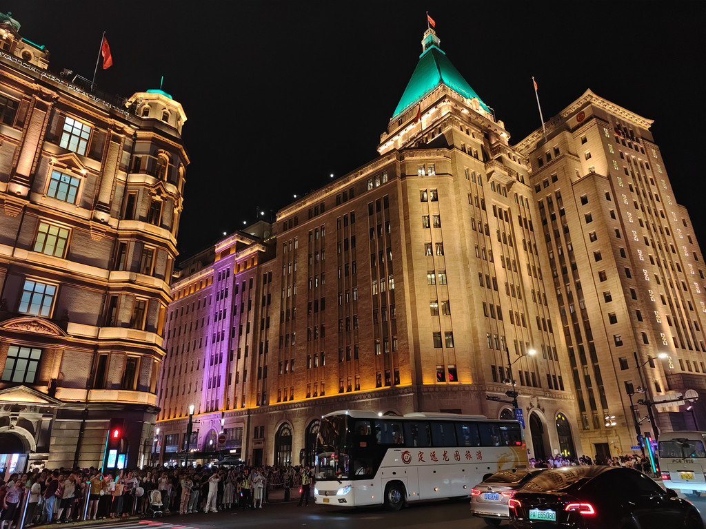 沿着外滩前行,看见好景就拍一番,终于看见不远处有码头了,赶忙搜寻路边的亭子,果然有一家卖游船票的,成人150元/人,游览40分钟,最后会回到出发地。此时是20:38,开船时间是21:40,要提前20分钟上船。不过,人家卖票的地方是外滩码头,距离实际开船的十六铺码头还有很远的距离,急行军也得走十五分钟,如果岁数大的,或腿脚不好的恐怕得走二三十分钟,。还好,我从这个码头下去到路边,有个公厕,排个队先解决一下,不然一会在船上就不好办了。