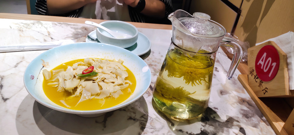 在美术馆参观了两个小时,就打车去上次没找对地方的吴记寻梦江南杭帮菜,这次打车来肯定不会错。进到店里,点了团餐,这个套餐有干锅花菜,一鱼两吃等,每一个都非常美味,吃的很好,餐也漂亮,味道也好。