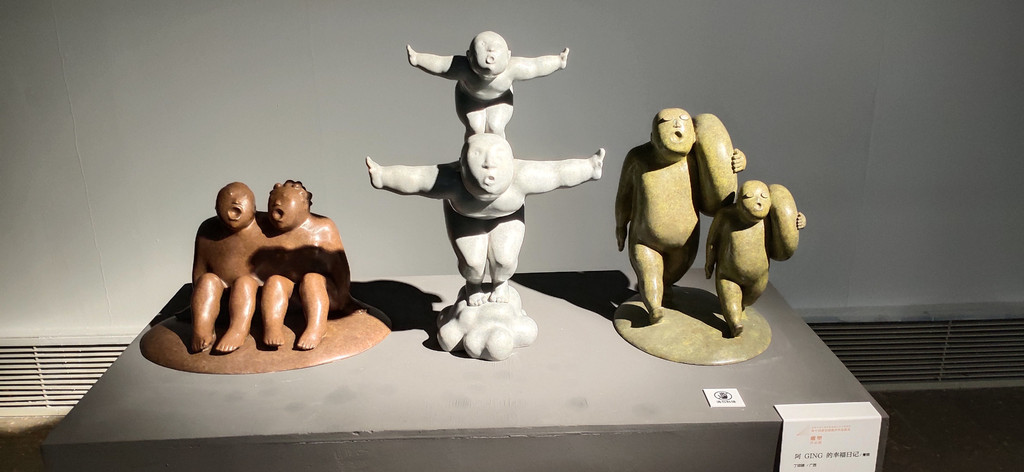 浙江美术馆外表也很漂亮,里面一层是比较大的一个商店,售卖文创和美术书籍,地下是美术材料商店。这里目前在展览一批雕塑,各种风格,各种主题,都挺有意思。不过有些作品让我联想起最近看的一些小视频,好像美术生的毕业作品展一样。不过我不懂美术,无论作品在美术上成绩如何,能认真把他们做出来就不是件容易的事情。