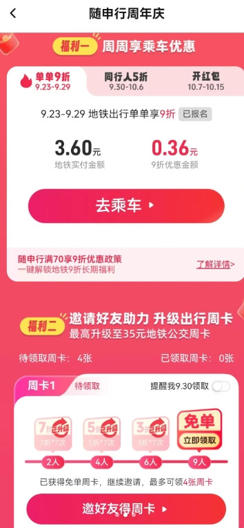 只需要在支fu宝搜“地铁九折”或“随申行周年庆”可以报名参与活动