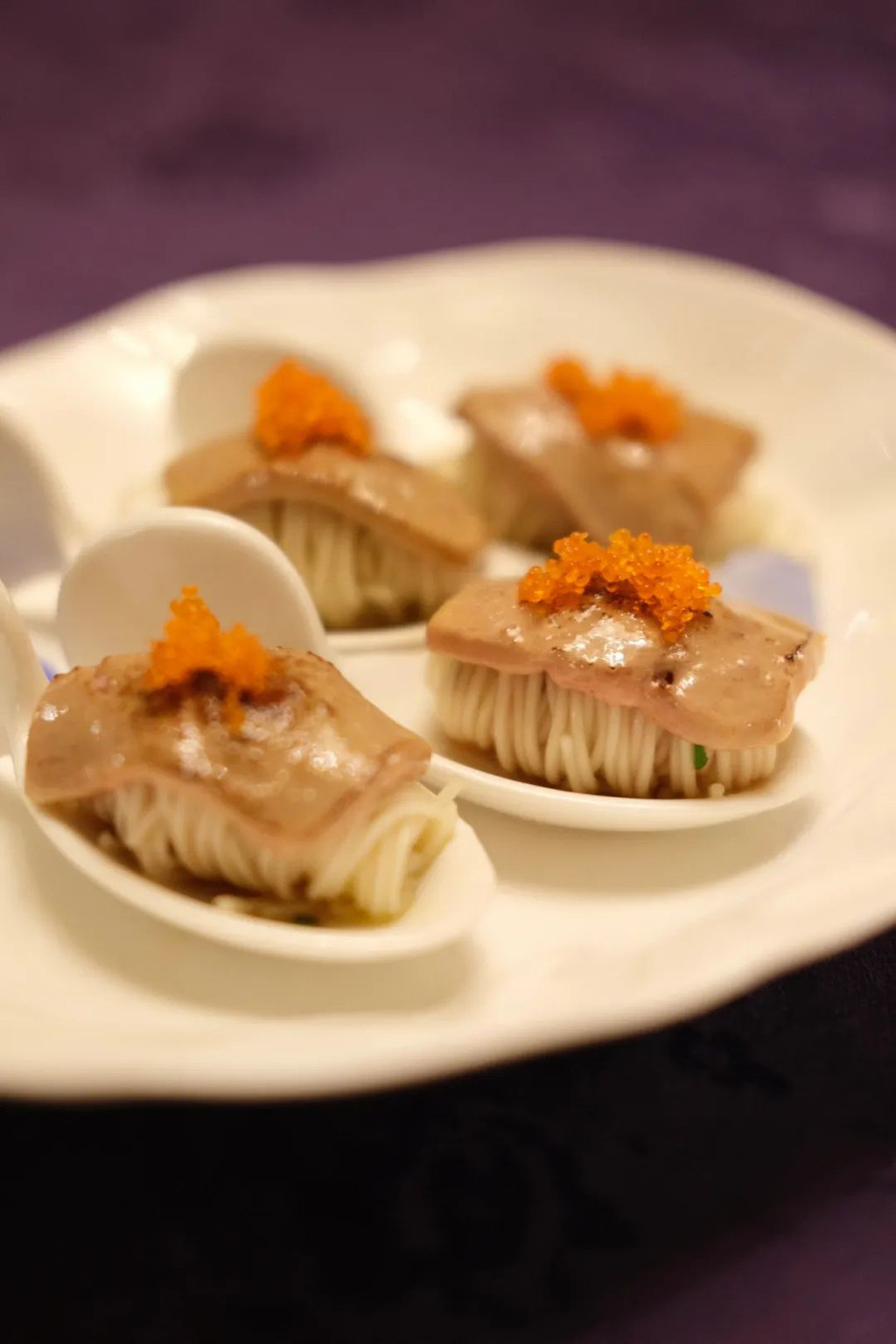 “固执”的伍先生在上海开朱雀以来,当然也有为了宠溺客人而做的妥协。我特别喜欢朱雀的“陈皮鲜牛肉丸”,浓香又松软,还根据江浙的习惯把个头缩小,一口一个,不用吃的时候“掐来掐去”,更雅。