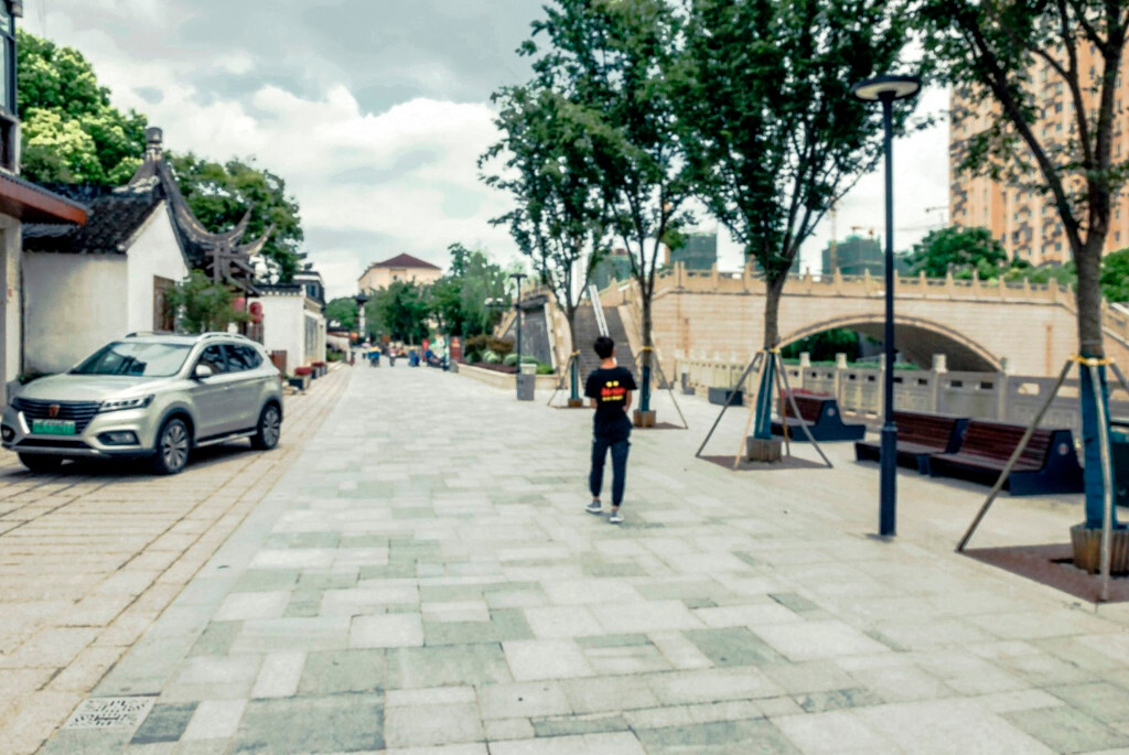 一河之隔,古今穿越。一般古镇都是伴水而依,三林塘则不同,一条河,像是天然屏障,将古老和现代分隔开来,将宁静和喧嚣分隔开来