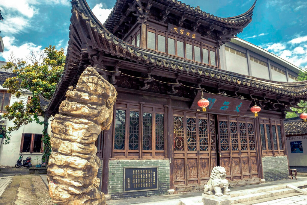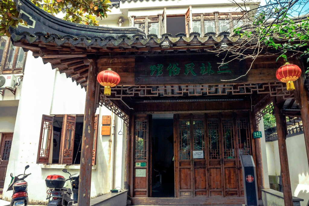 三林民俗馆,这里是非物质文化遗产保护基地,两层古楼,记载了三林塘的历史、发展、乡俗、民风。