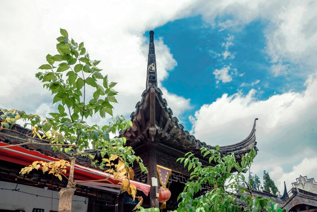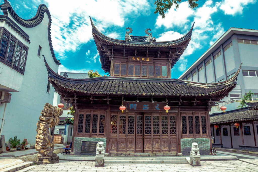 文昌 阁和长廊相邻,并排伫立在街边,两层亭阁式的仿古建筑,四角正方形,古色古香,别具韵味,里面供奉的是“ 文昌 帝君”神像“照胆台”是三林的重要地标之一,每年这里都会举行庙会,