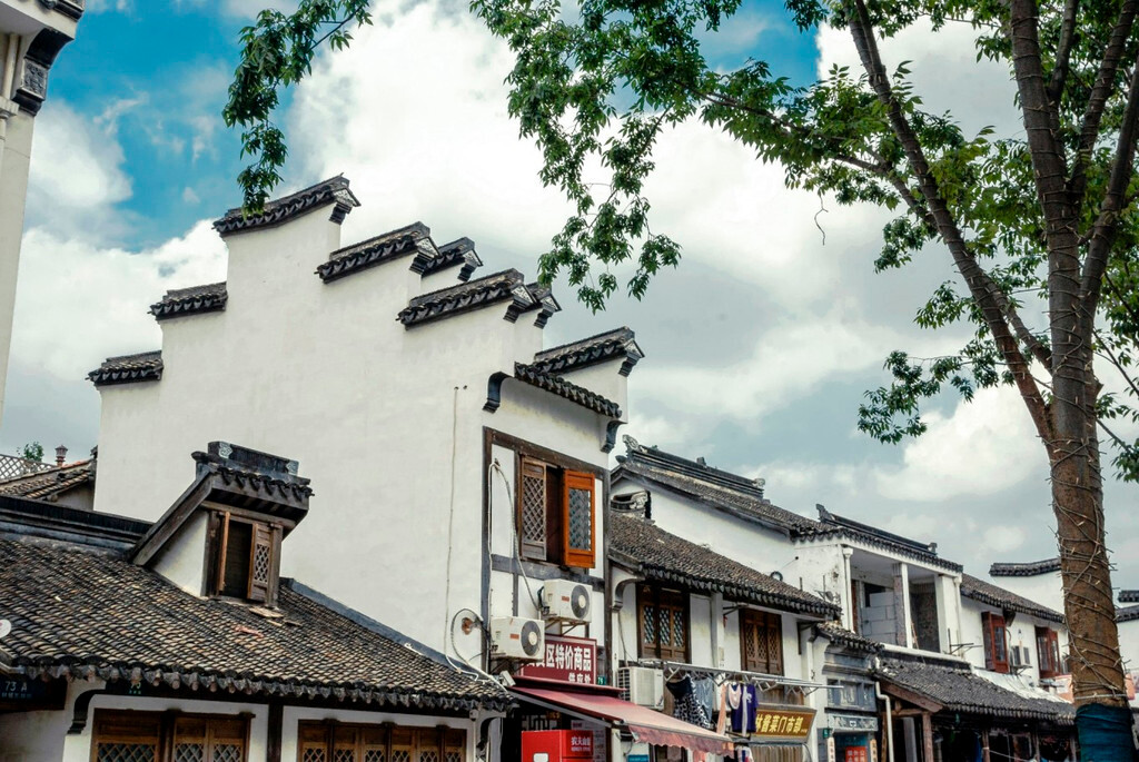 具有民俗文化特色的东林街,主要的建筑是仿造徽派建筑,高大的三叠马头墙和观音兜式的山墙,错落有致的分布在东林街的房屋上,