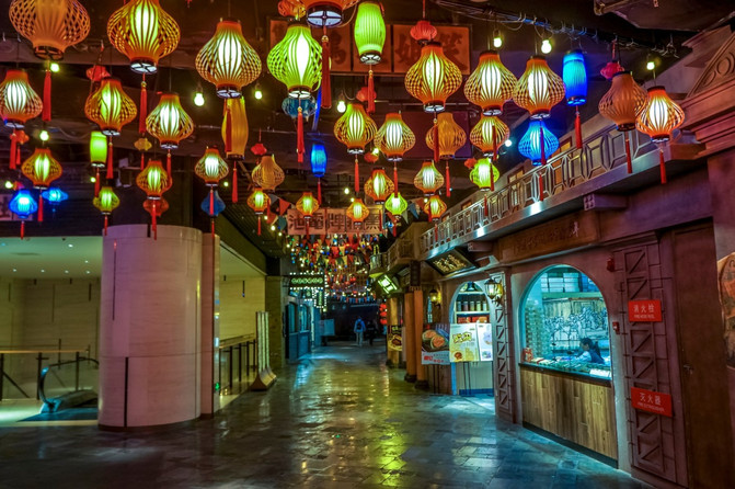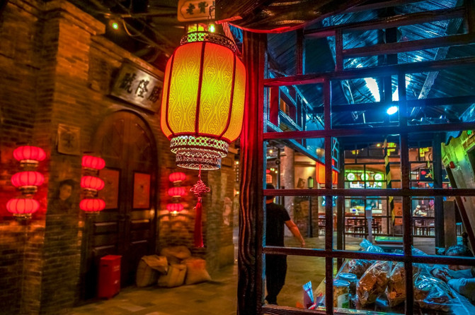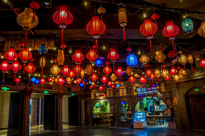 除了霓虹灯, 中国 风的灯笼也随处可见