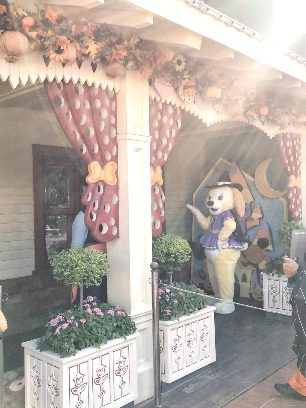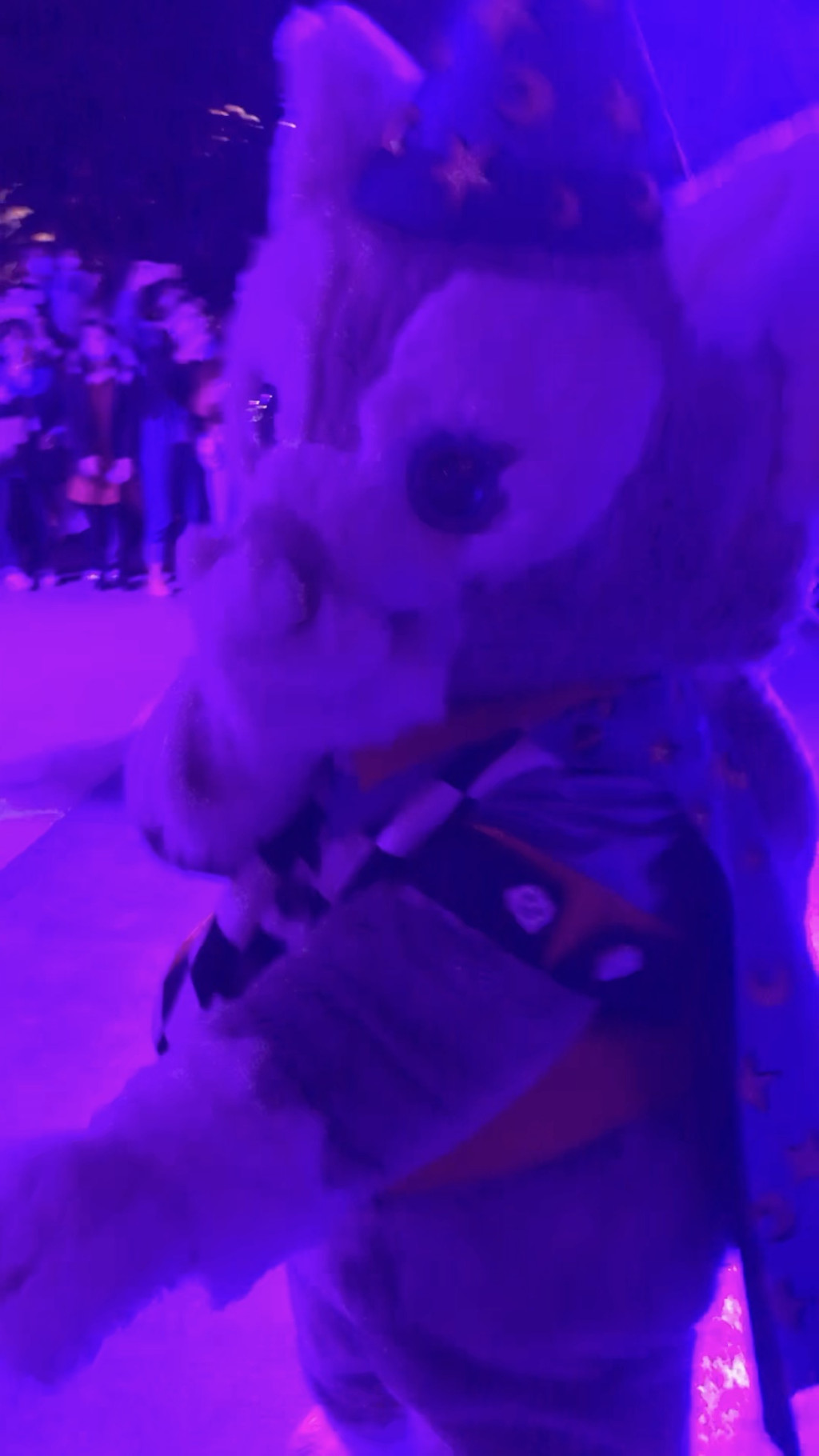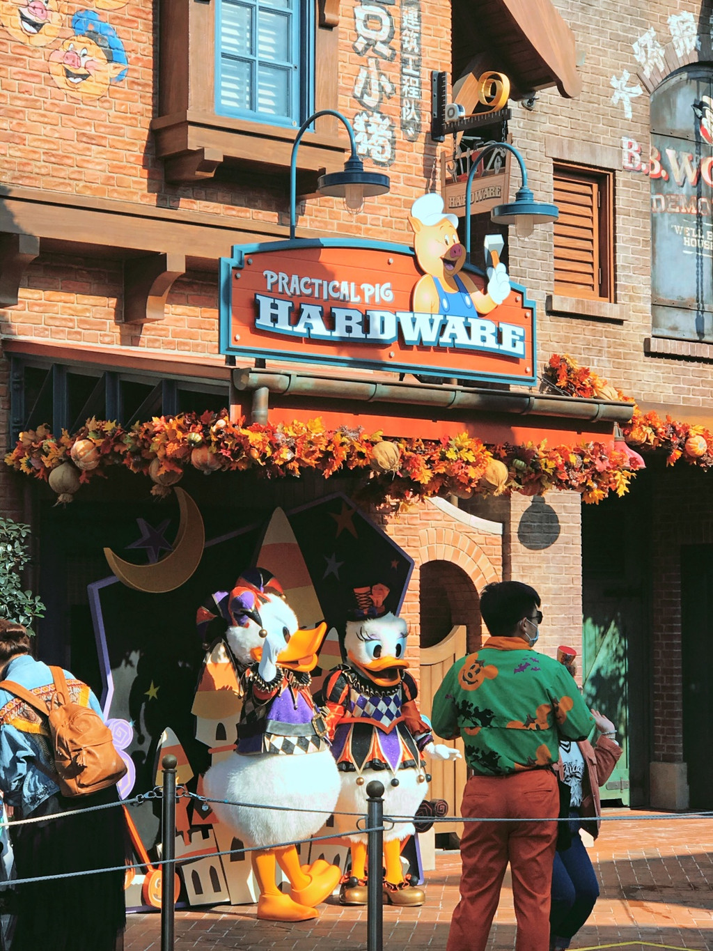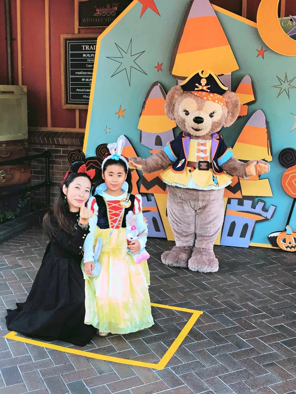 游行开始,气氛非常好,好几个工作人员和卡通明星和娇娇互动(吓唬她)超级开心啊,后面枚枚也来互动,激动啊,这些都要感谢生日徽章的加持哦。