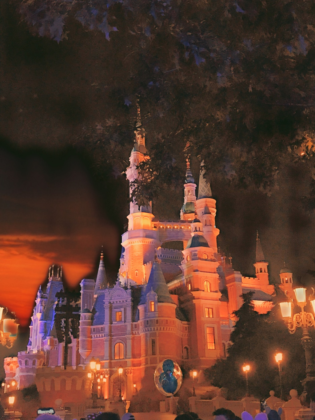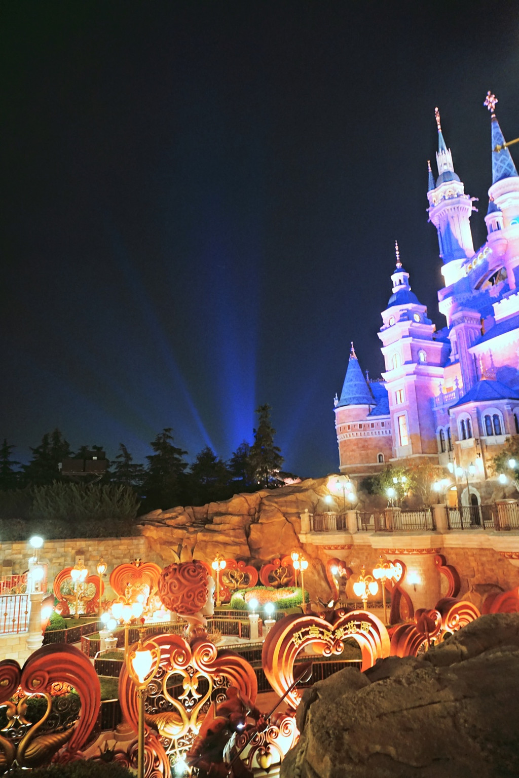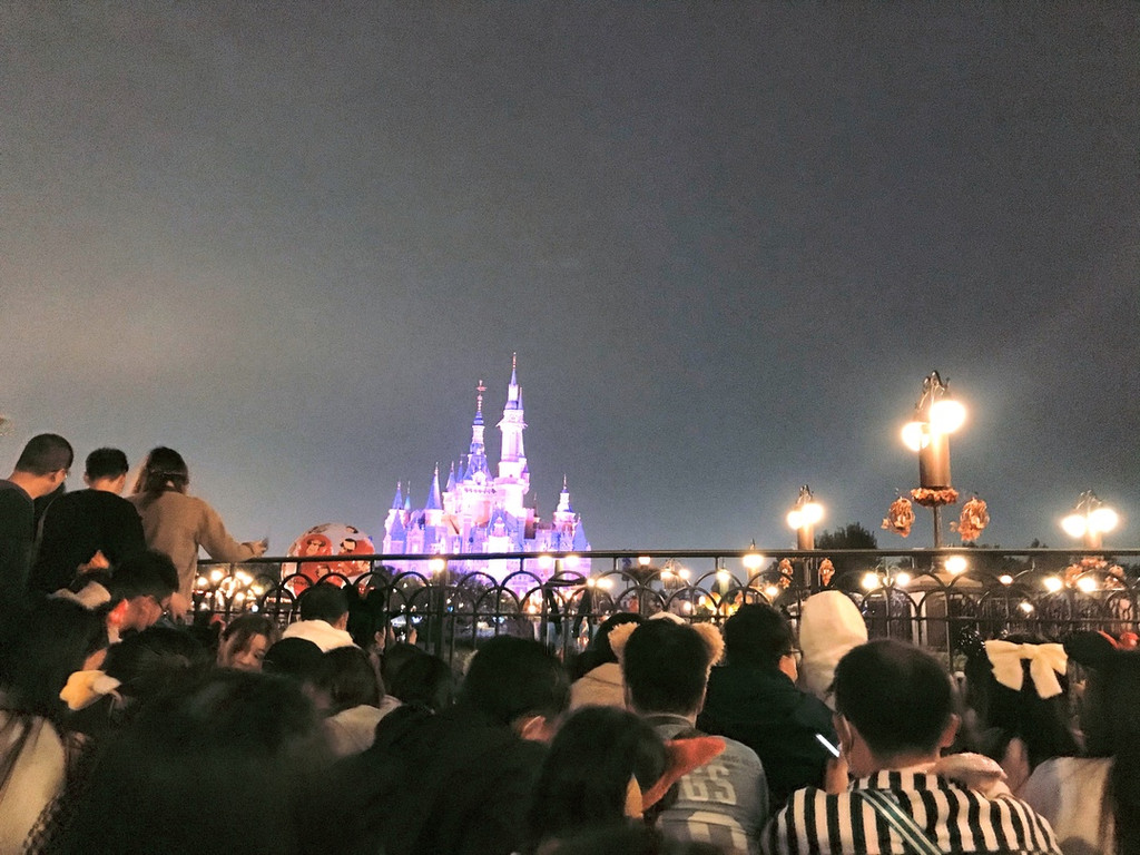 这边提醒下一定要早点去城堡正面看,因为这时候就已经有城堡的灯光秀了,我们这次在侧面看的,就只能回头看到一个在发光放音乐的城堡。