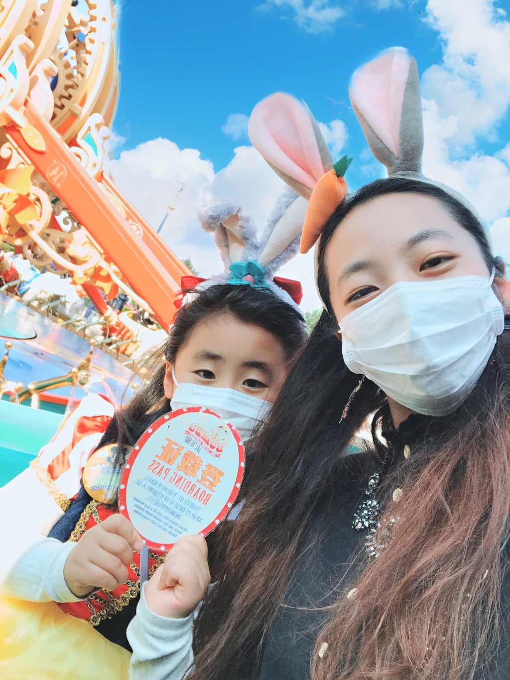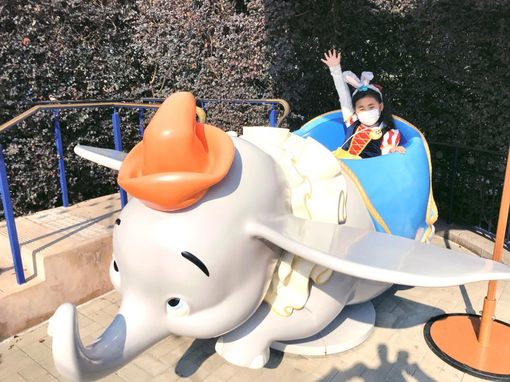 扔球失败,带着两个徽章(我觉得不好看,准备下次换掉,娇娇是喜欢得不得了,说自己自己努力得到的要留着),往城堡移动,看看时间1:45,路过小飞象,人不多,就排了20分钟随便玩下体验还是不错的,想起在东京迪士尼排了一个多小时队坐小飞象,那感觉真是......