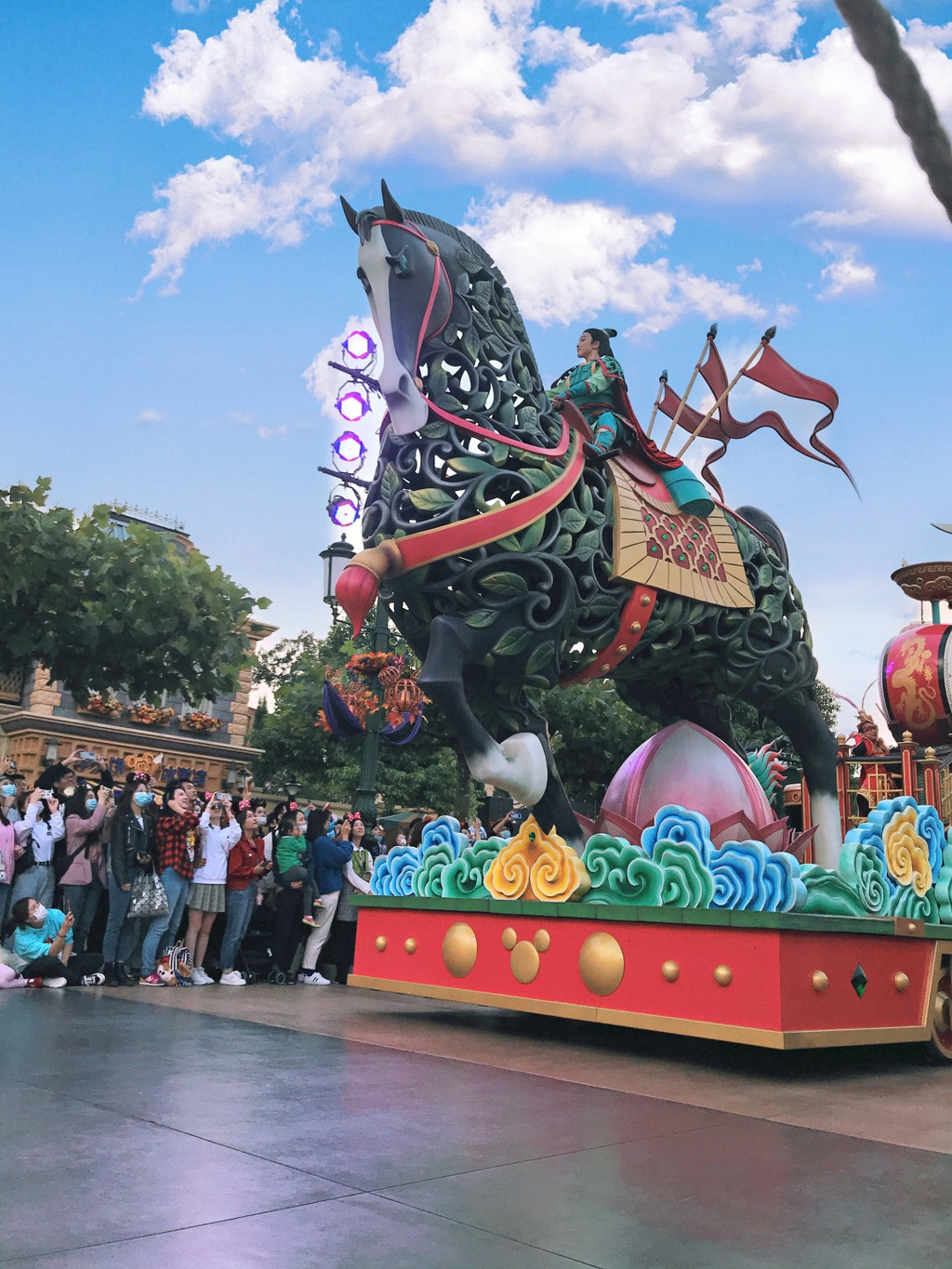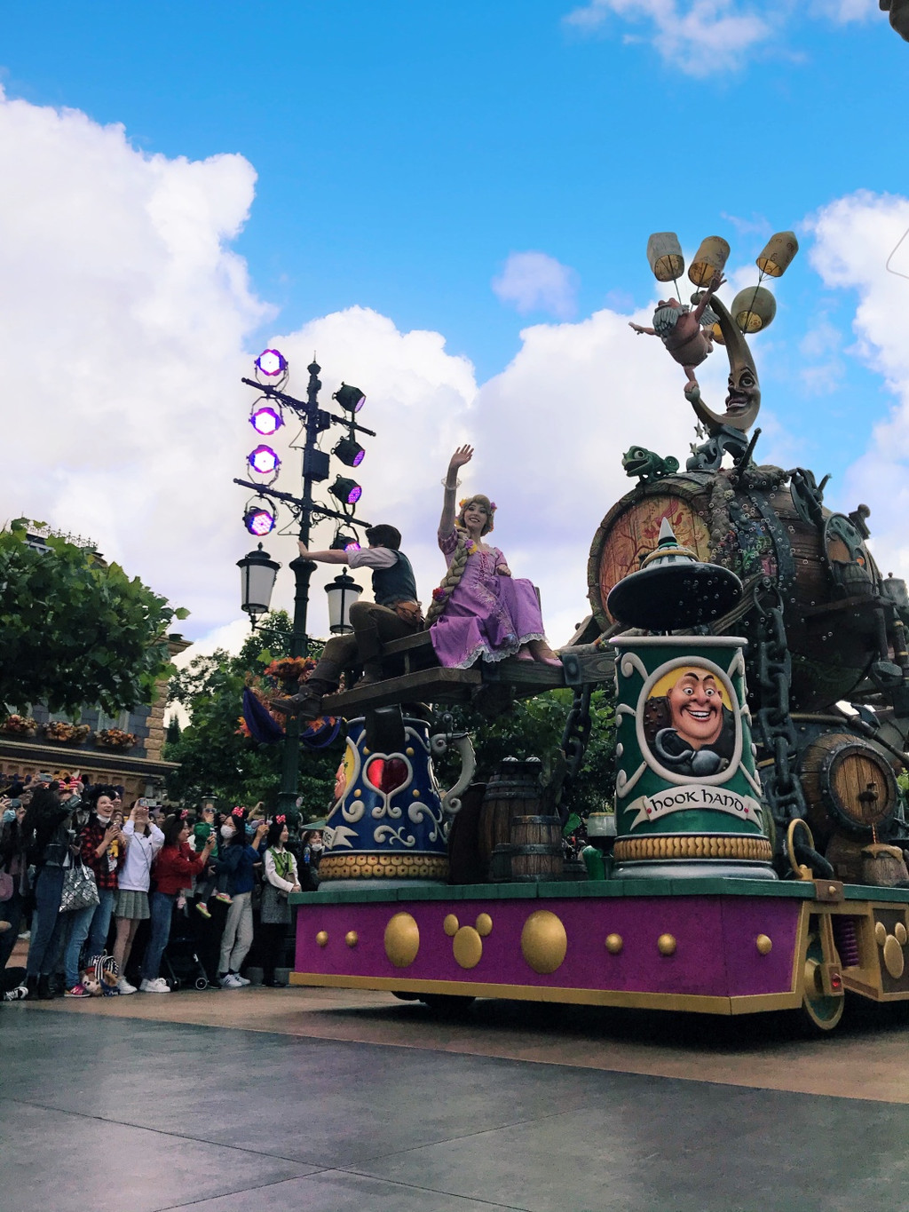 看完童话盛典就直接去找个地方等三点的花车吧,此时已经很多人在等了,所以最好的位置肯定选不到拉,只能找还还可以的地方。