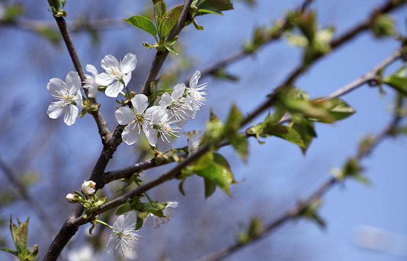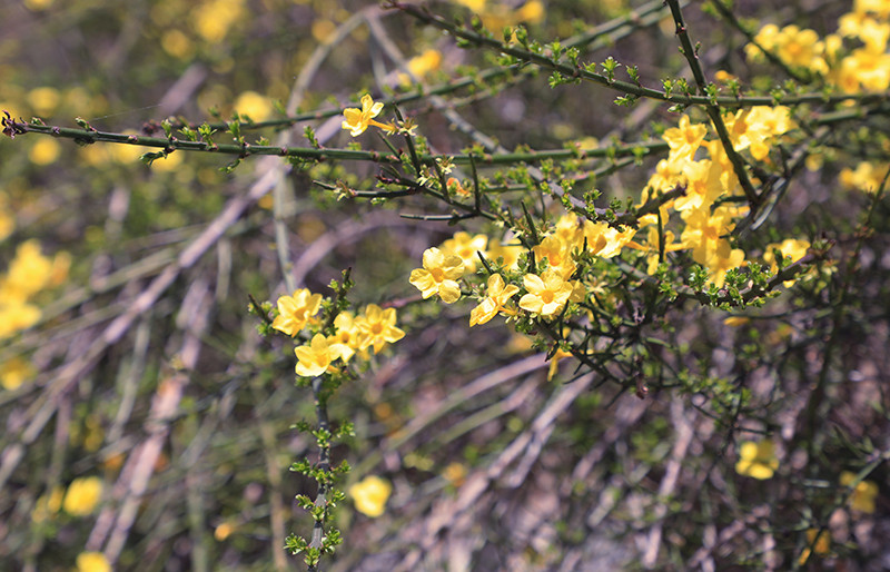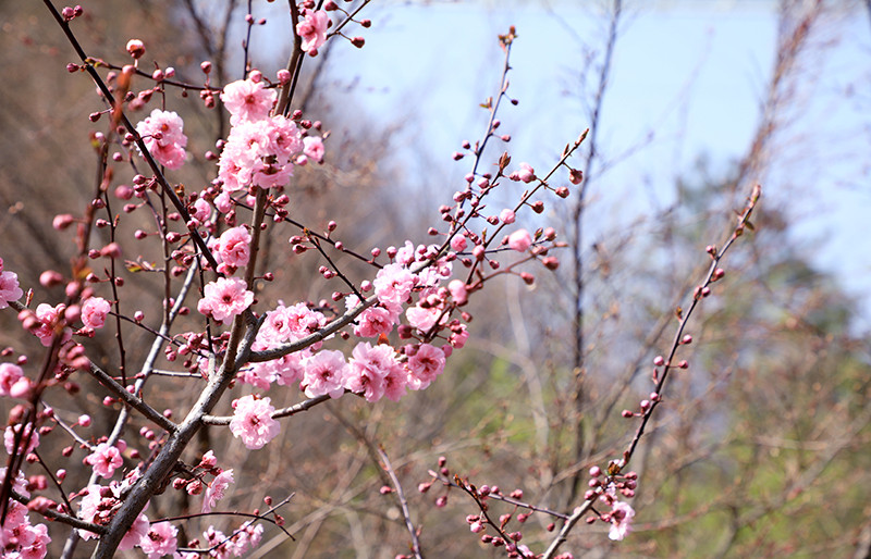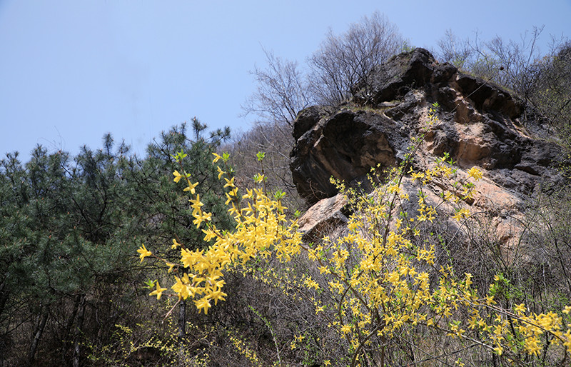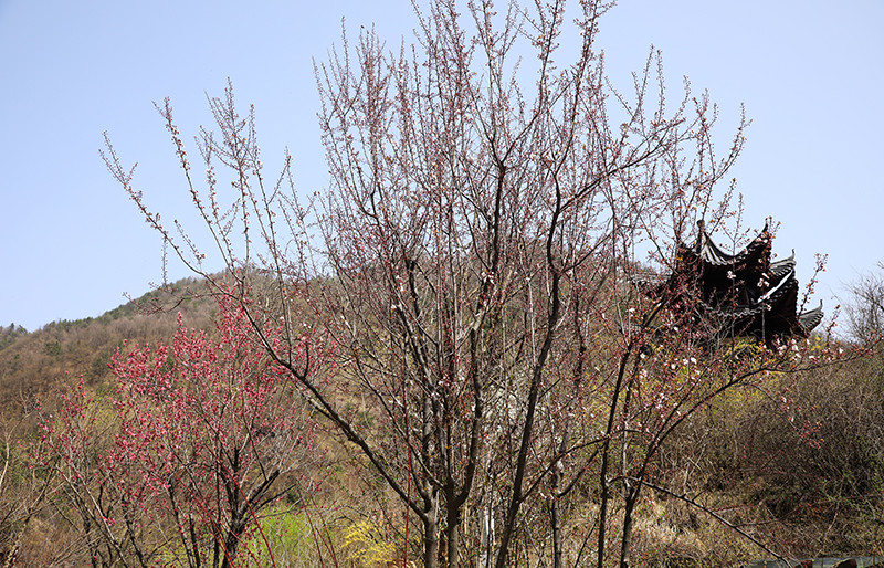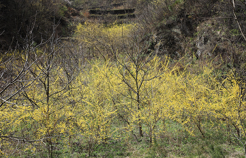 今天,虽尚未入四月,但已是三月之末,西安城里的迎春花早已零落为泥,红叶李也只空一树红叶,其花已无处可寻,但当我们翻过秦岭,在据西安一个半小时车程的商州江山景区,我们看到的却依然是初春模样。