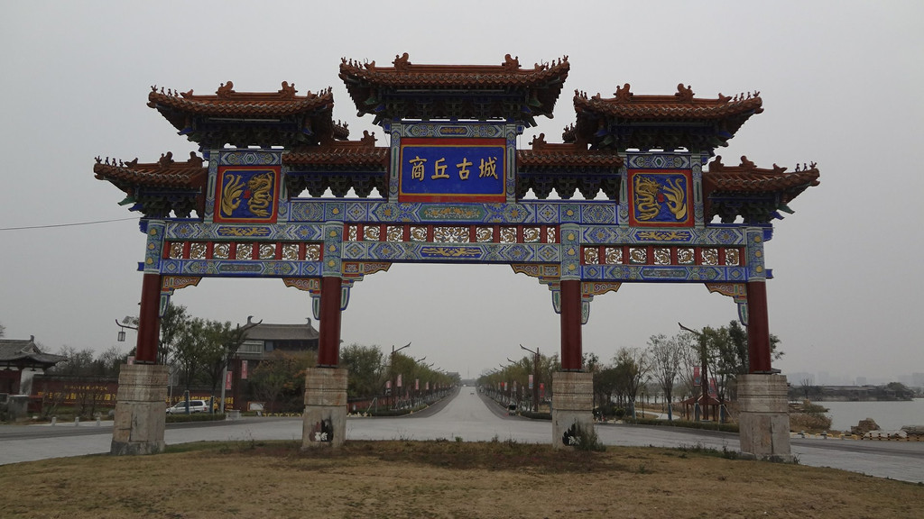 网上介绍商丘古城是世界唯一按照八卦金木水火土建造的城,被评为世界遗产。商丘是明、清时期归德府所在地,所以又称归德府城。1502年黄河决口夺淮入海,现在的商丘古城建于明正德六年(公元1511年),距今已有500多年的历史。现今的古城下面埋藏着自秦汉以来的几个朝代的城池。