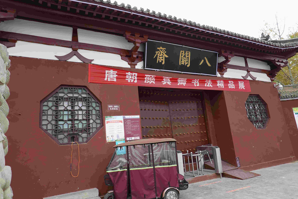 出古城后看见早晨没开门的八关斋可以进了,介绍:颜真卿劝降叛军被杀,石碑的碑文对当地士绅参加康熙千叟宴会做了记录,该记录已经被列入商丘市文物保护名单,