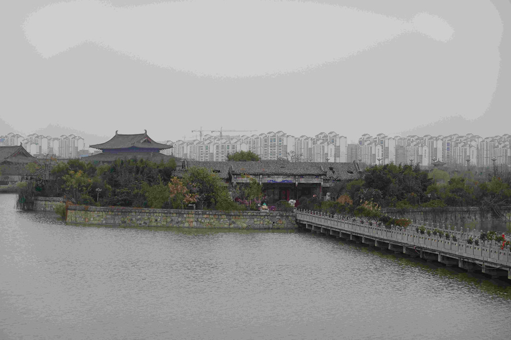 走到护城河边,原来这里是国家水利风景区,水面宽阔、碧波荡漾,夏季这里一定是消暑纳凉的好地方。