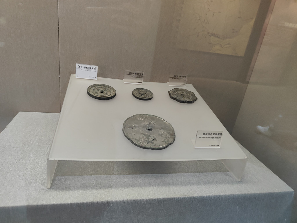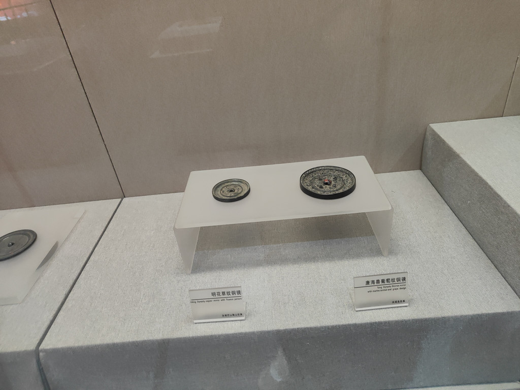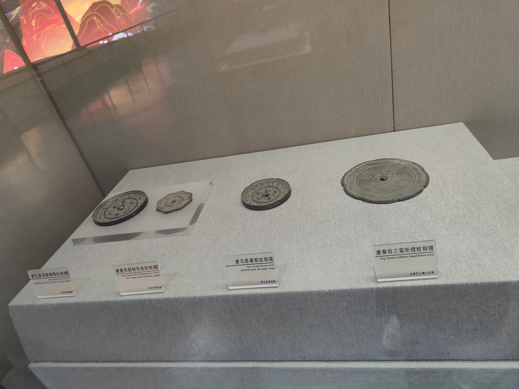 唐朝的铜镜也很精美,常见的有海兽葡萄纹、瑞兽葡萄纹、鸟兽纹等,虽然雕饰精美,但我还是更喜欢线条简洁的葵形孔雀纹铜镜和葵形三鸾衔绶纹铜镜。到盛唐以后,铜镜以花为主,多是吉祥图案,自由豪放,这也与当时大唐帝国的繁盛有关第的。装饰方法除了浮雕、彩绘、镶嵌、鎏金等,还出现了金银平脱、螺钿镶嵌、涂釉、涂漆等新的工艺。