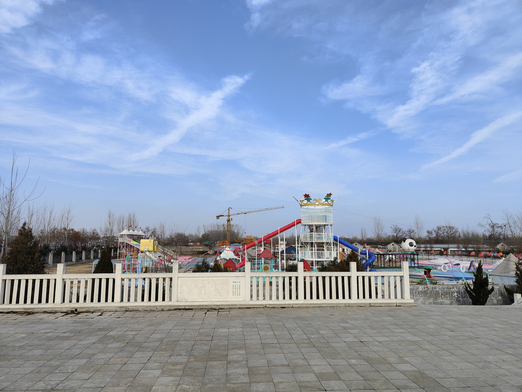 站在台上,可以看到周围的风景,入目所及大多都是游乐设施,我们过来的时候,倒确实看到那边是游乐场。