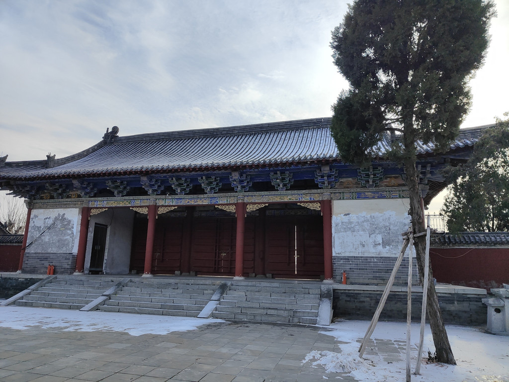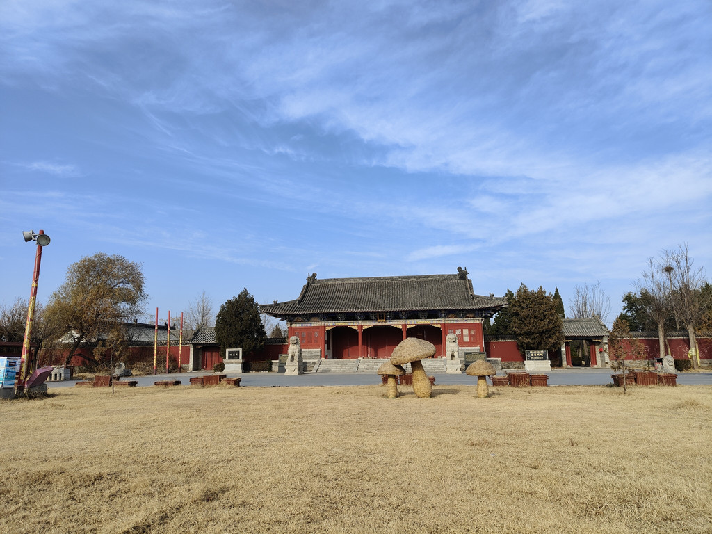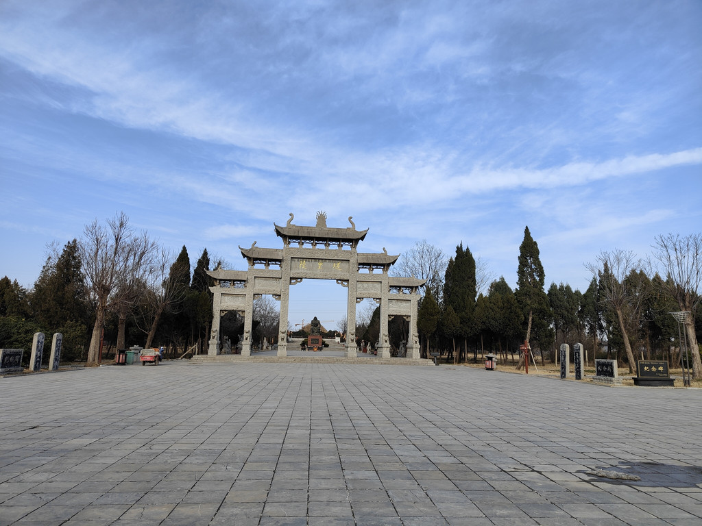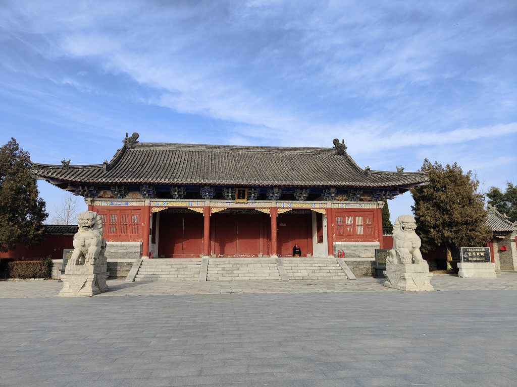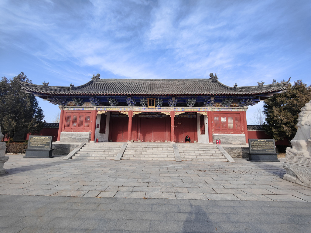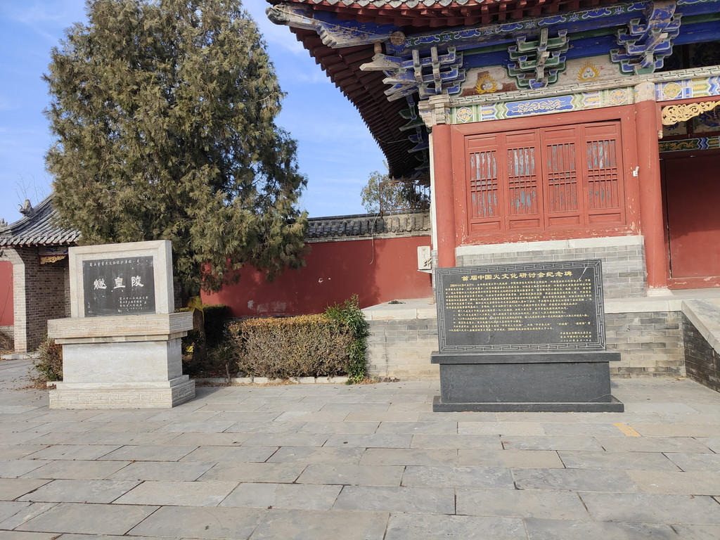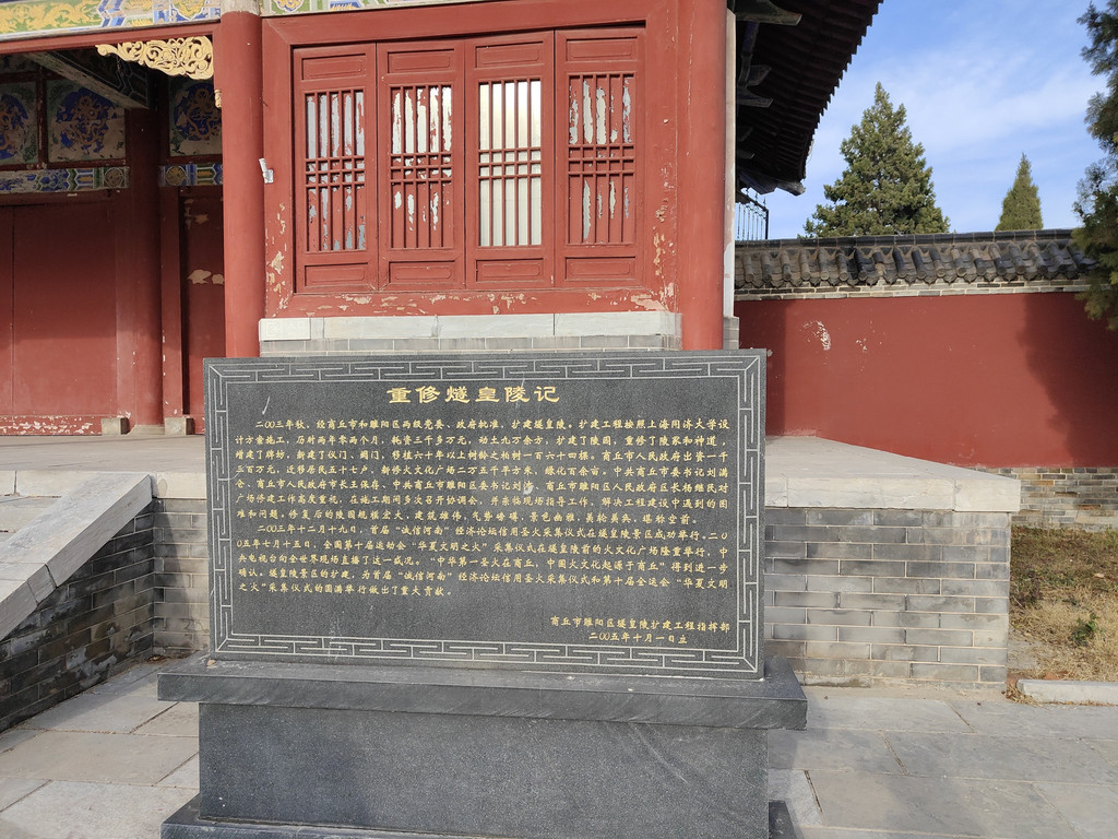 旁边有一座小门,走出去才发现似乎这里才是燧皇陵的正门。一座面阔五间的仿古建筑雕梁画栋,不过其实人家大门紧闭的,开的还是旁边的小门。