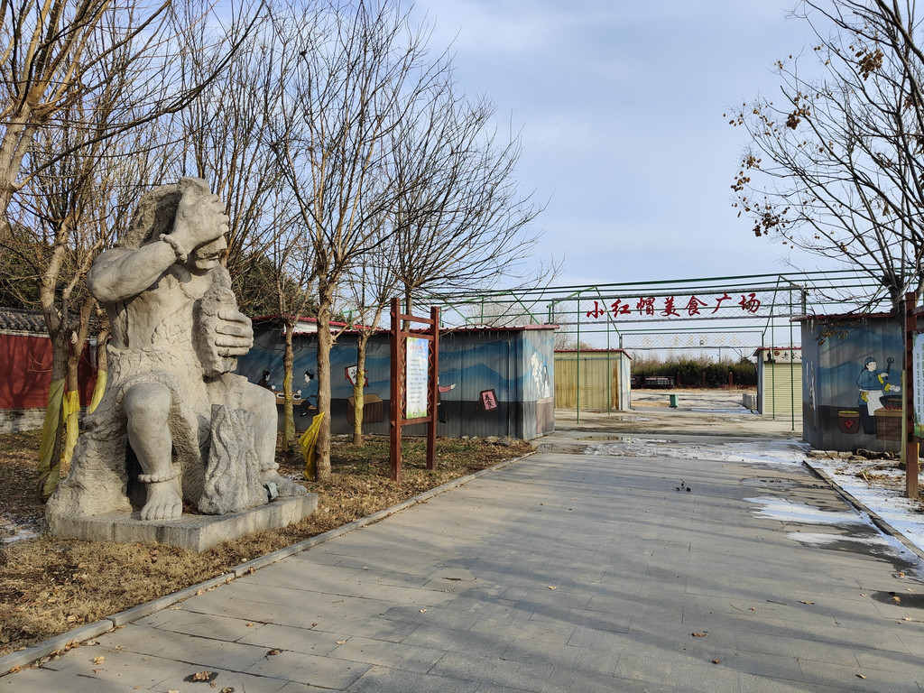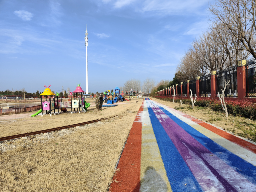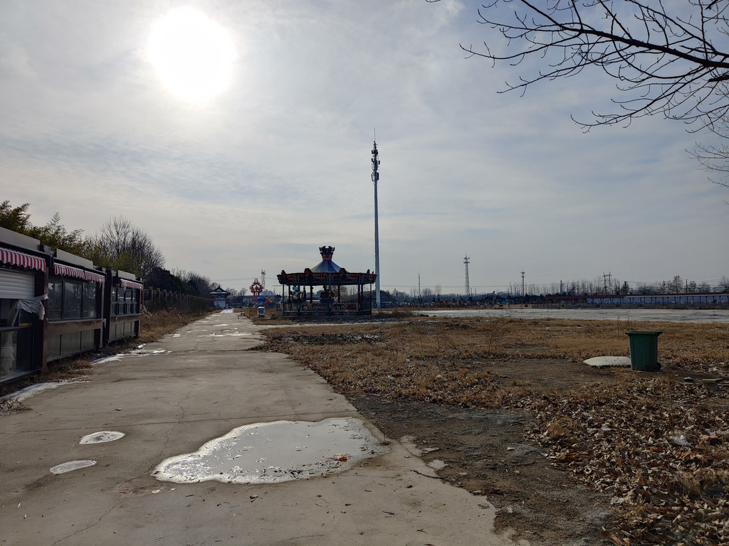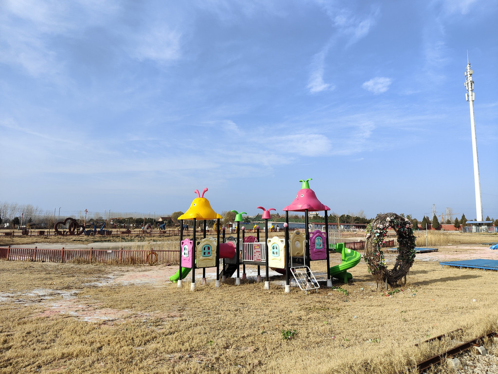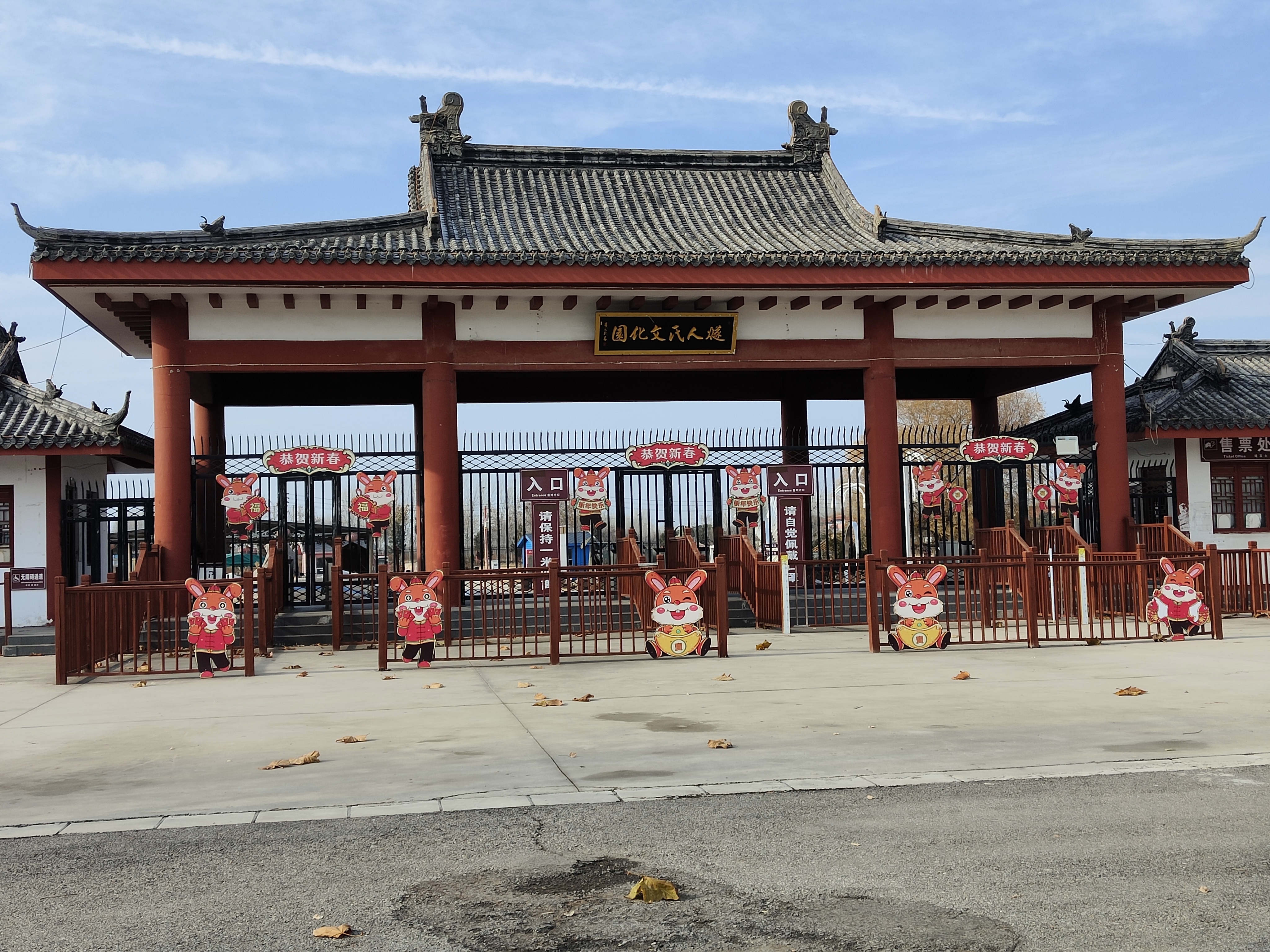 前面就是游乐园,占地面积很大,也有很多游乐设施,可惜的是除了看到有一个人坐在门口晒太阳以外,竟然没有其他游客。走到另一道门的时候,我才恍然,原来并不是燧皇陵的大门不气派,而是我们摸到了人家的后门。正门也挺气派,上书“燧人氏文化园”,大概初衷是想借助燧人氏这位三皇之首的名气,打造一个综合性的文化园。不过,燧人氏与游乐园的适配度,其实并没有那么高,连带着燧皇陵也游人寥寥。