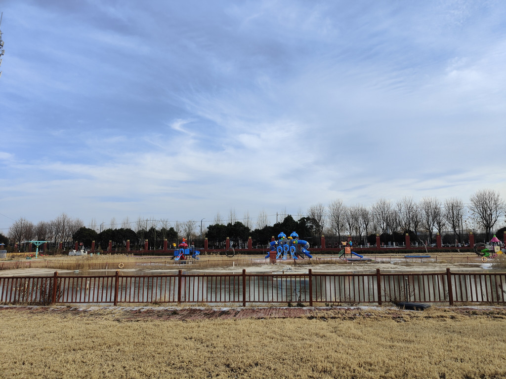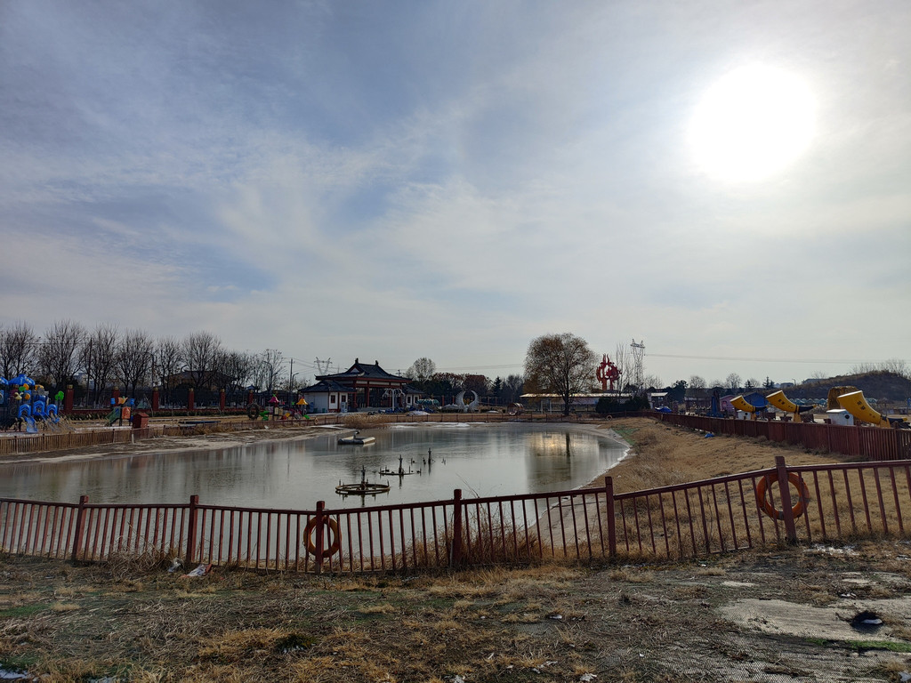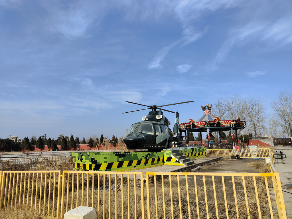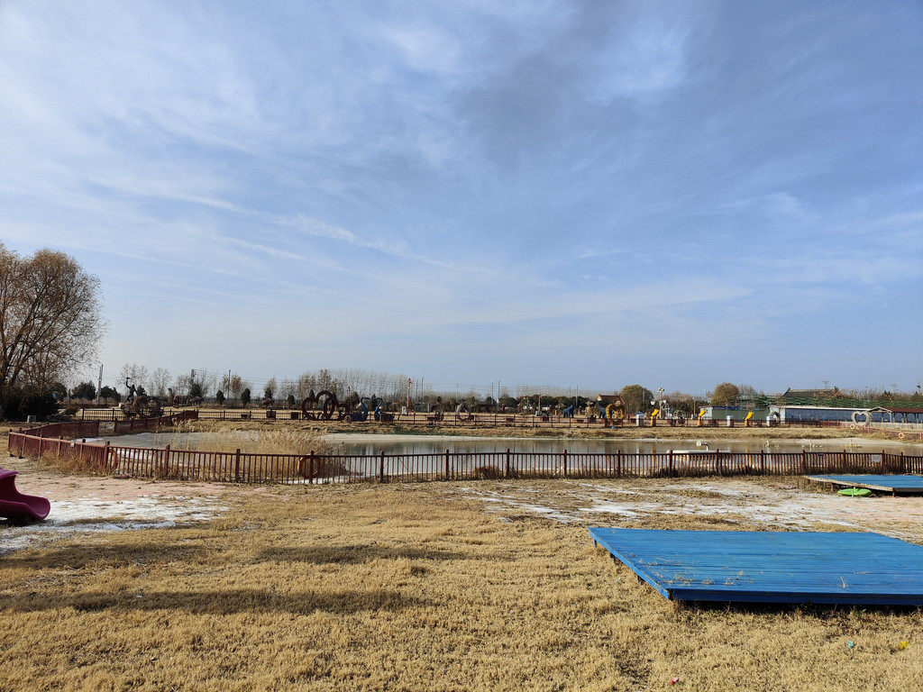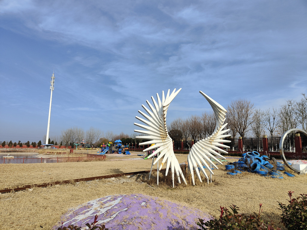 前面就是游乐园,占地面积很大,也有很多游乐设施,可惜的是除了看到有一个人坐在门口晒太阳以外,竟然没有其他游客。走到另一道门的时候,我才恍然,原来并不是燧皇陵的大门不气派,而是我们摸到了人家的后门。正门也挺气派,上书“燧人氏文化园”,大概初衷是想借助燧人氏这位三皇之首的名气,打造一个综合性的文化园。不过,燧人氏与游乐园的适配度,其实并没有那么高,连带着燧皇陵也游人寥寥。