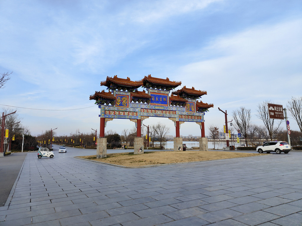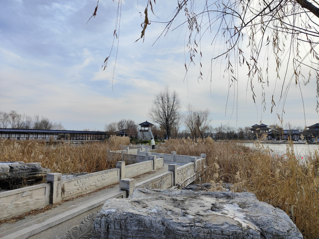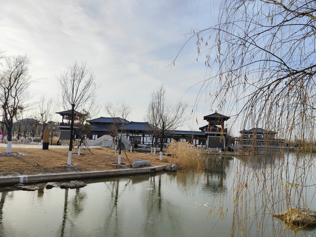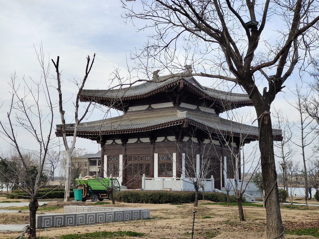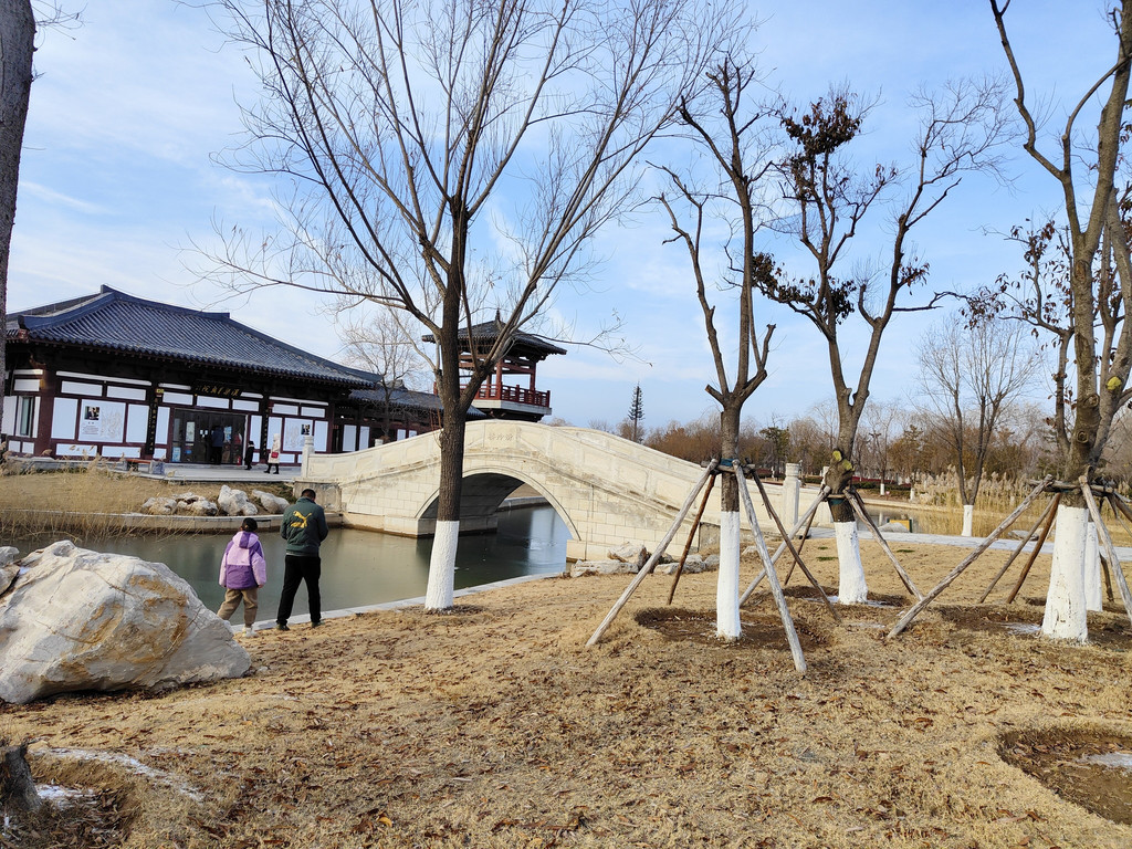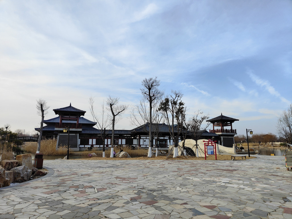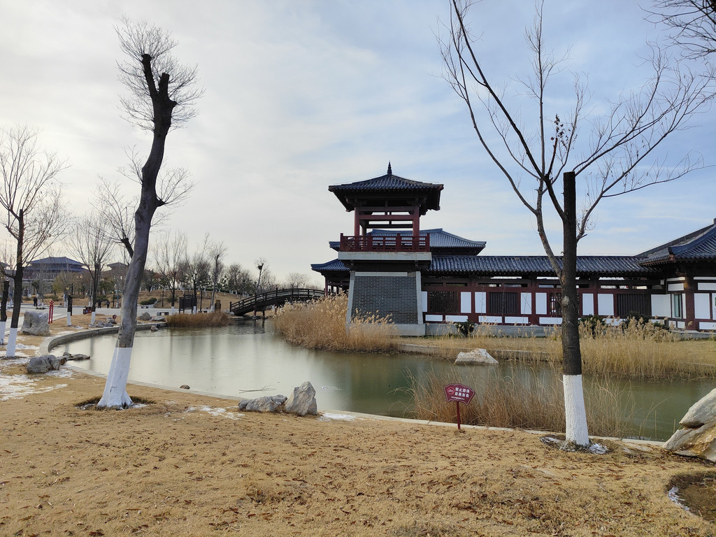汉梁文化公园位于商丘市睢阳区平原路以东、古宋河以南、张巡路以北、未来农业以西区域,规划面积1119亩,是一个以体现汉代梁国文化为内涵的综合性公园。公园的面积很大,留下的时间也不够我们游览整座公园。虽说公园依托的是汉代梁国文化,但看公园的建筑,诸如曜华宫、观星台、文雅台、清泠台、忘忧馆、望秦岭、田园小筑、金果园、同心亭、修竹亭、观瀑亭等,都是新建的,倒也不强求一览全貌了。