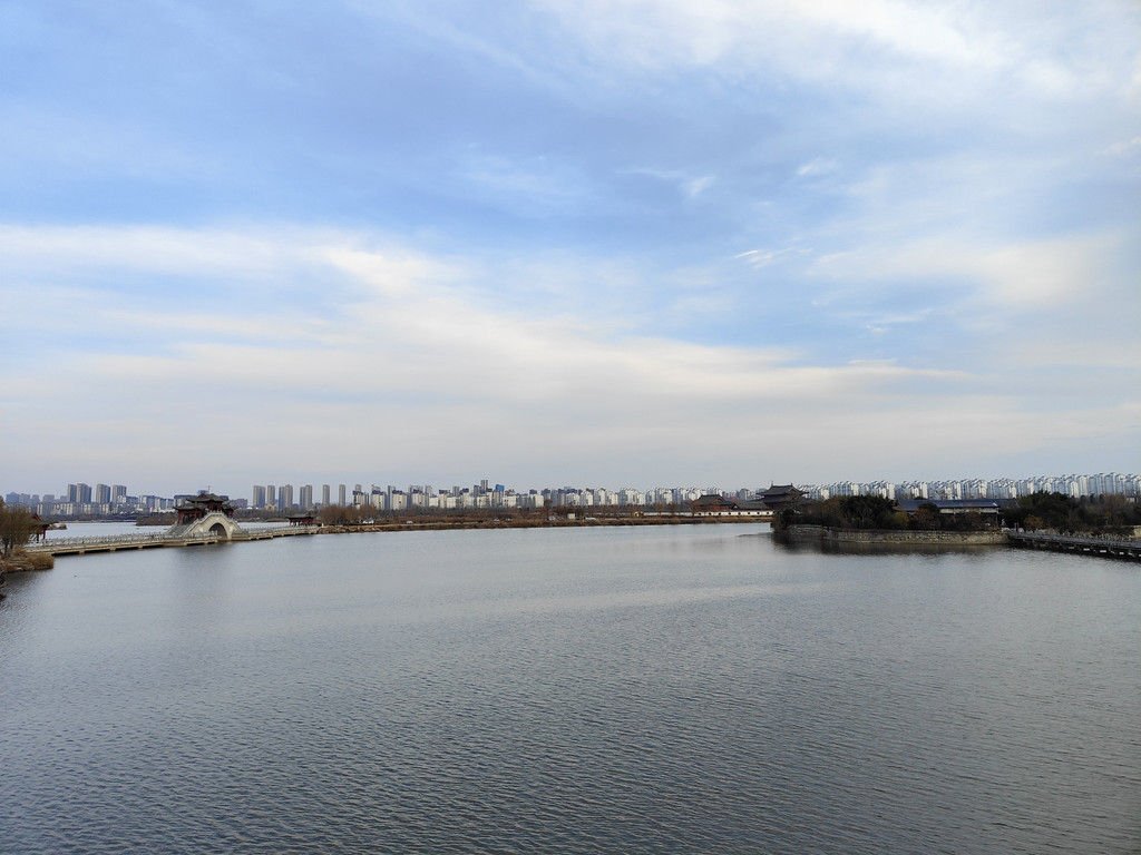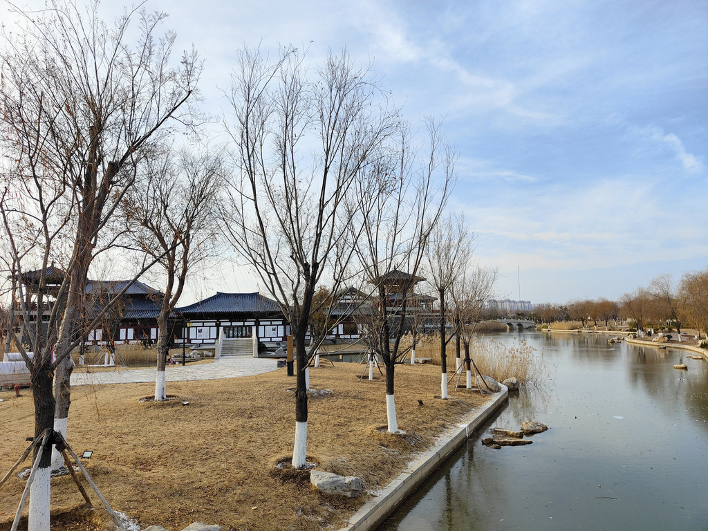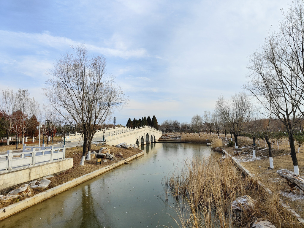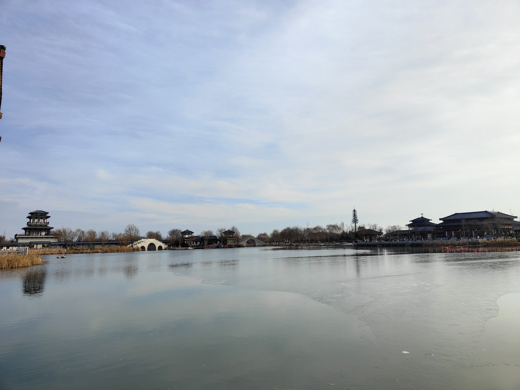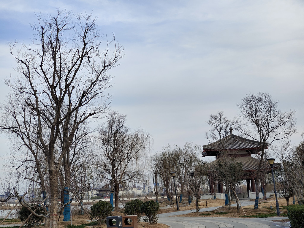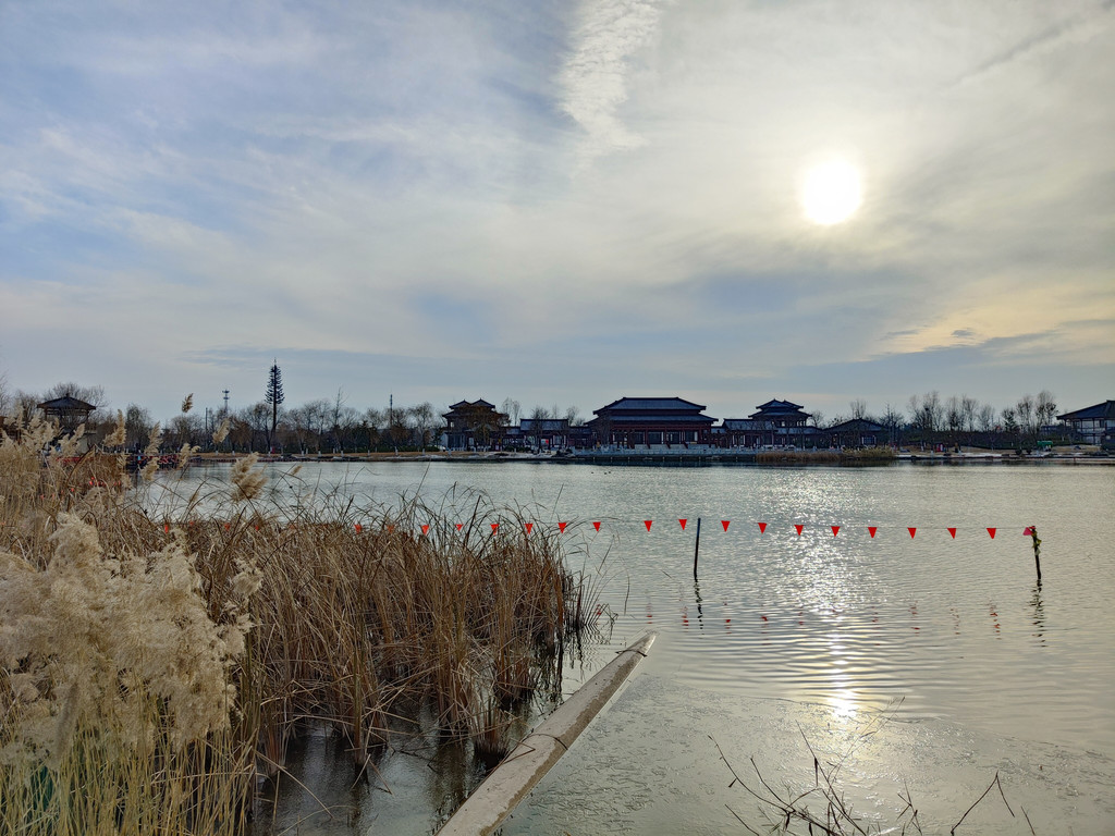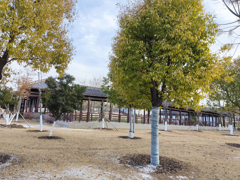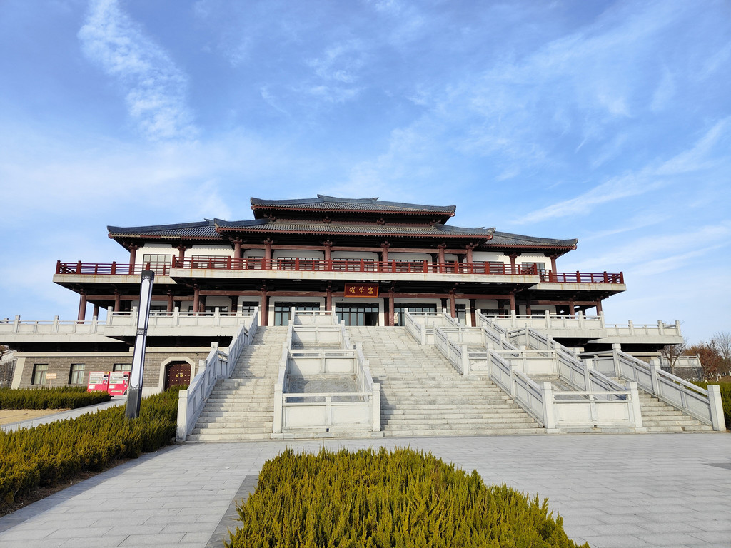 汉梁文化公园位于商丘市睢阳区平原路以东、古宋河以南、张巡路以北、未来农业以西区域,规划面积1119亩,是一个以体现汉代梁国文化为内涵的综合性公园。公园的面积很大,留下的时间也不够我们游览整座公园。虽说公园依托的是汉代梁国文化,但看公园的建筑,诸如曜华宫、观星台、文雅台、清泠台、忘忧馆、望秦岭、田园小筑、金果园、同心亭、修竹亭、观瀑亭等,都是新建的,倒也不强求一览全貌了。
