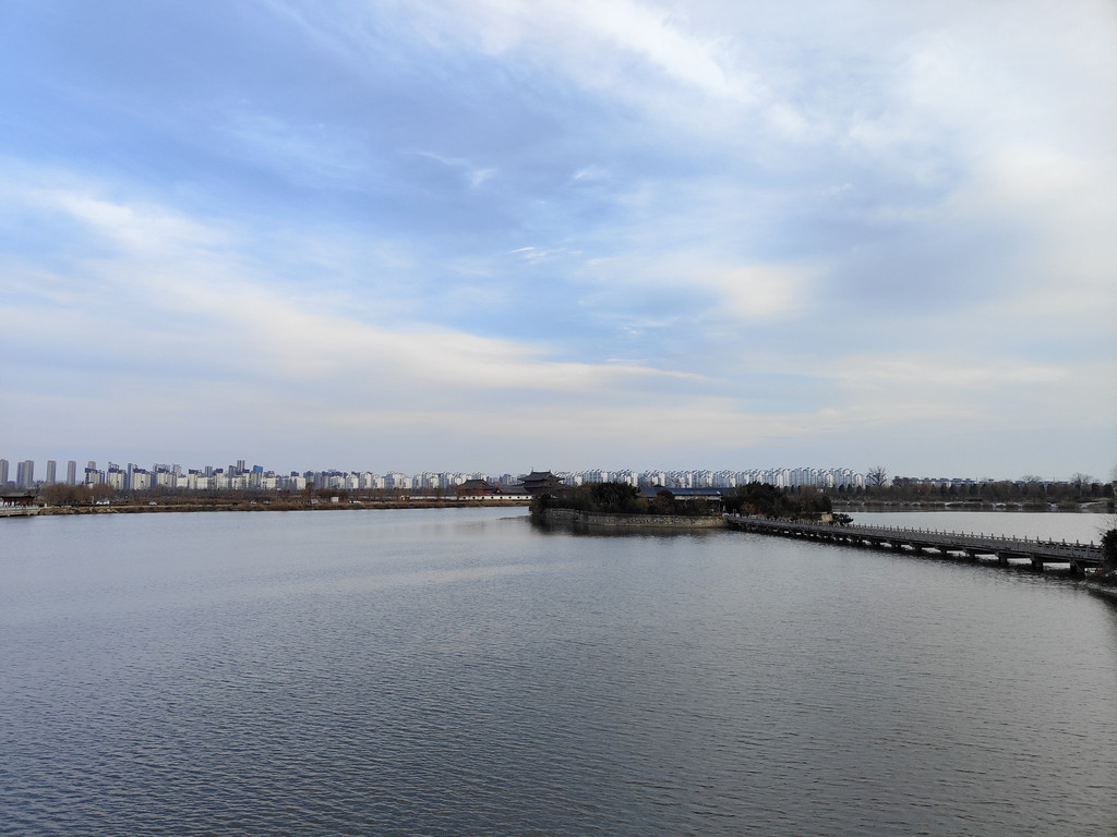 我们信步而行,倒也没有根据地图去寻找梁园的精品线路。公园很大,建筑大多临水而建,除了曜华宫等这类大型建筑外,也有小型的亭台。从西门进,走到南门,最后从北门出,公园的东半部没有再走过去,只是隔湖远眺,也觉得规模实在不小。