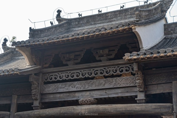 榫卯连和,青砖为墙,铺以黑瓦,再装饰飞檐、垂脊兽,雕刻门楼、梁柱、斗拱等,最后构成了这座宏大的古宅。