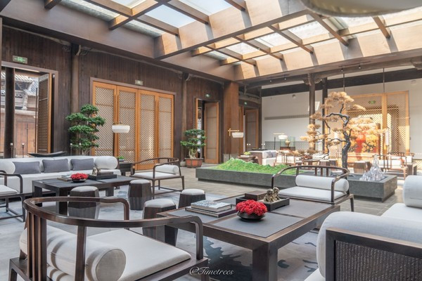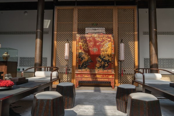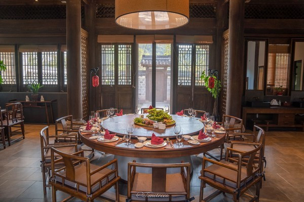 坐落于酒店中心位置的进士第古院,目前担任着酒店接待、展示、茶歇等多项功能,但它的另一个身份还是一个古代家族府邸,是酒店最具代表性的中国榫卯结构古建。