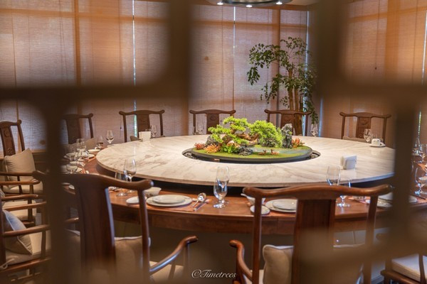 而我独爱包厢内那转盘中央的主题园林盆景,在充分享受美味的同时又为之增添了一抹诗意与情趣,当真是秀色可餐。