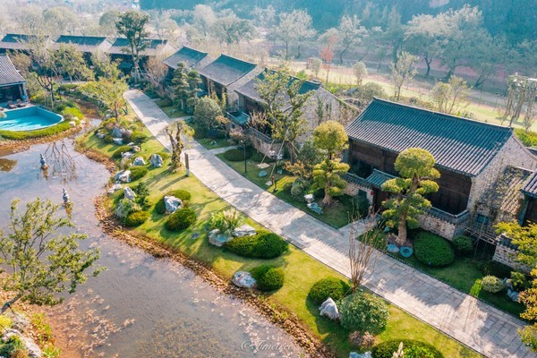 这座中式高端酒店位于江西上饶灵山脚下,占地268.3亩,建筑面积达1.98万平方米,以青砖黛瓦为基调,又结合了现代化、国际化设计元素,最终打造出了一处令人向往的桃源之境——悦麓开元观堂酒店。