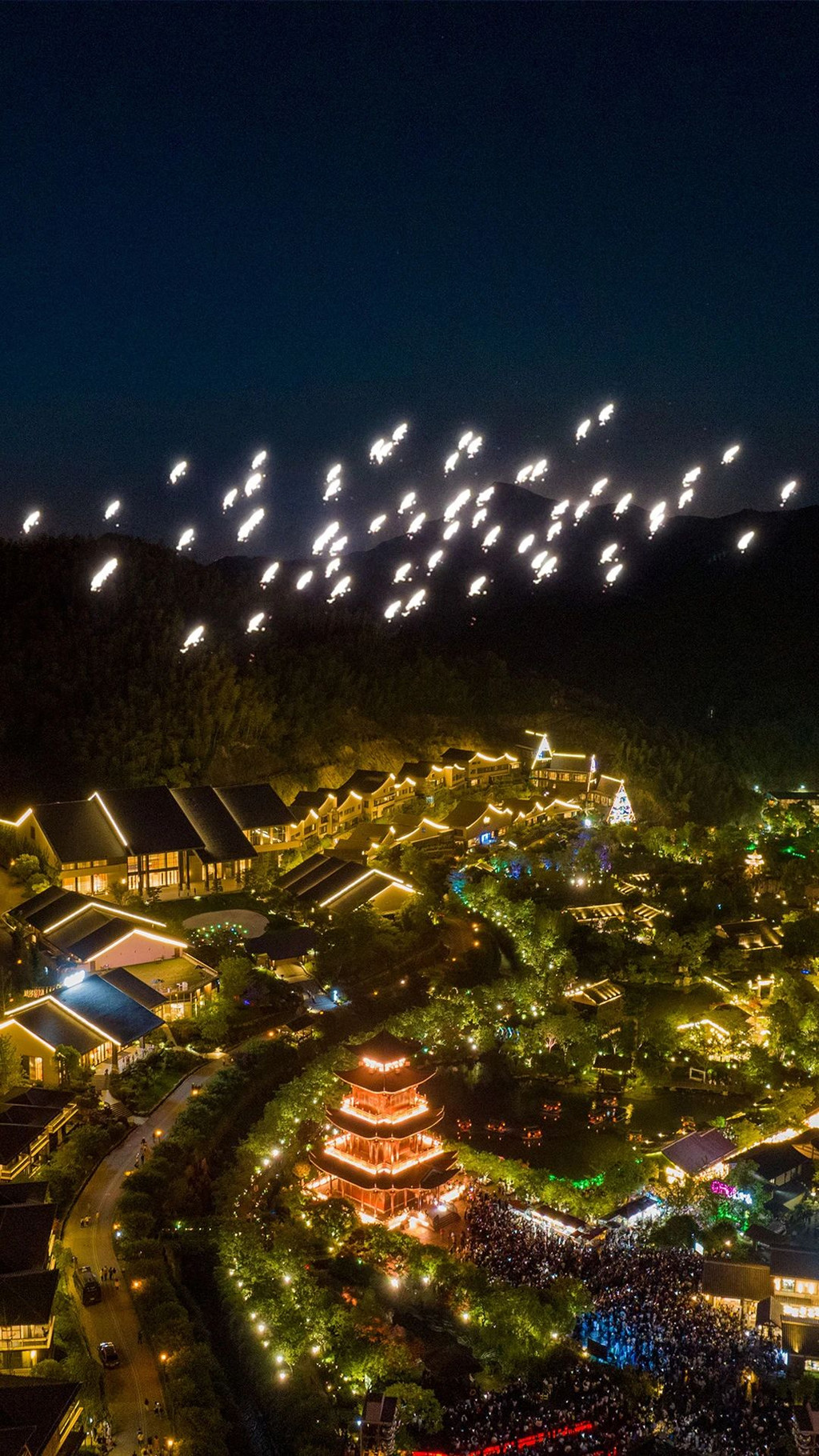 在天元餐厅的露台上,低头,俯瞰仙村,火树银花的夜景一览无余;抬头,仰望星空,仿佛伸出手就能触摸到那密密麻麻的星星。