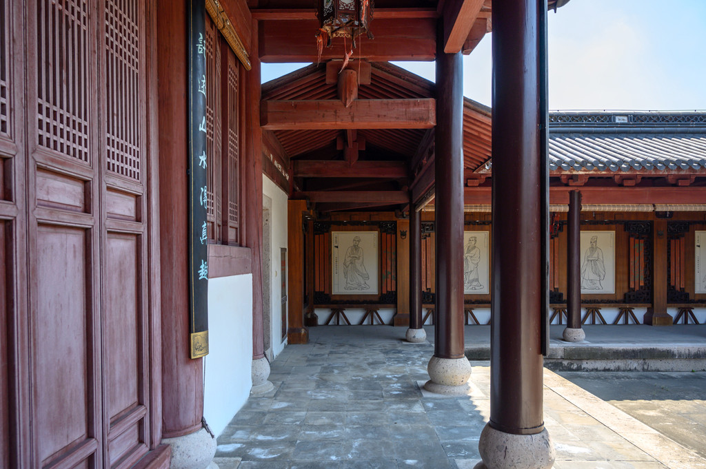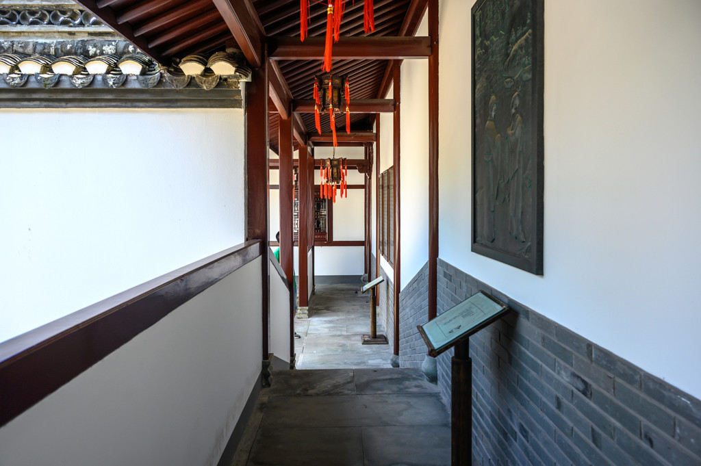 为了让游客更清晰明了的了解东山太傅祠,在入口处还设有“东山太傅祠重建碑记”,感兴趣的话可以阅读下,碑记旁为祠内的回廊,回廊中悬挂着谢氏家族历代名贤的画像及家族历代名人谱。