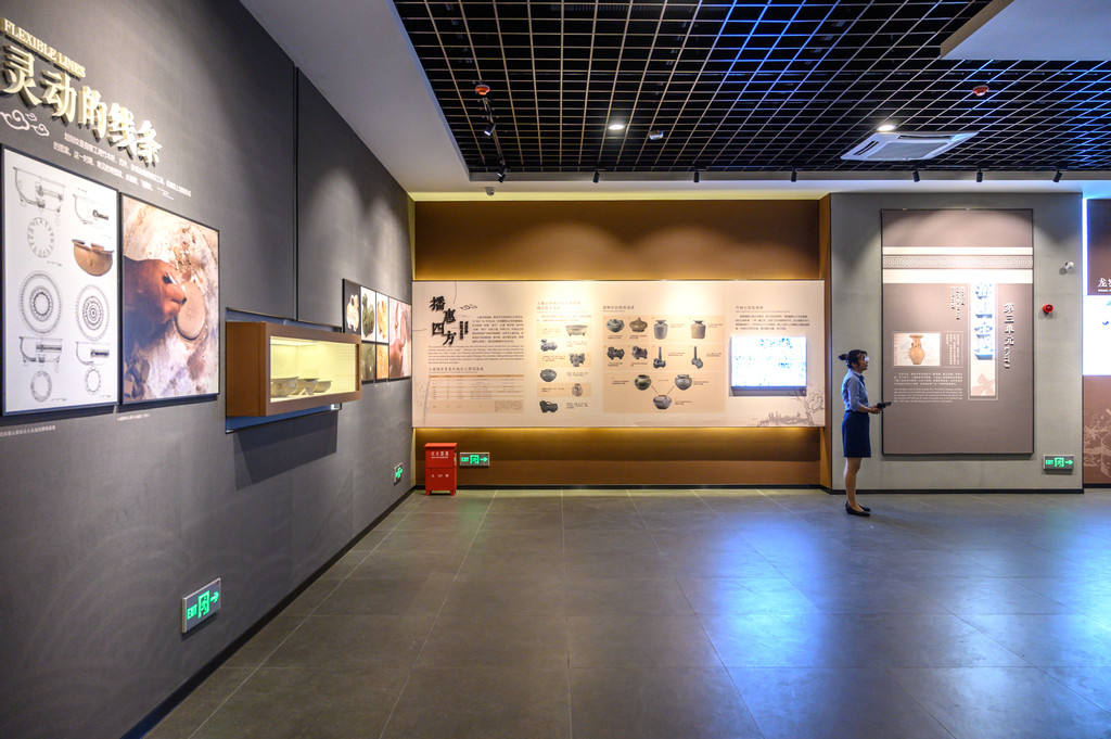 除了考古遗址公园,,还有一座极具科普意义的陈列馆,即"上虞越窑青瓷陈列馆",也是到凤凰山考古遗址公园必打卡的去处,整座陈列馆的设计极具线条感,尤其是外围的那条长廊,处处散发着古香古色的气息,吸引了不少人在这拍照。
