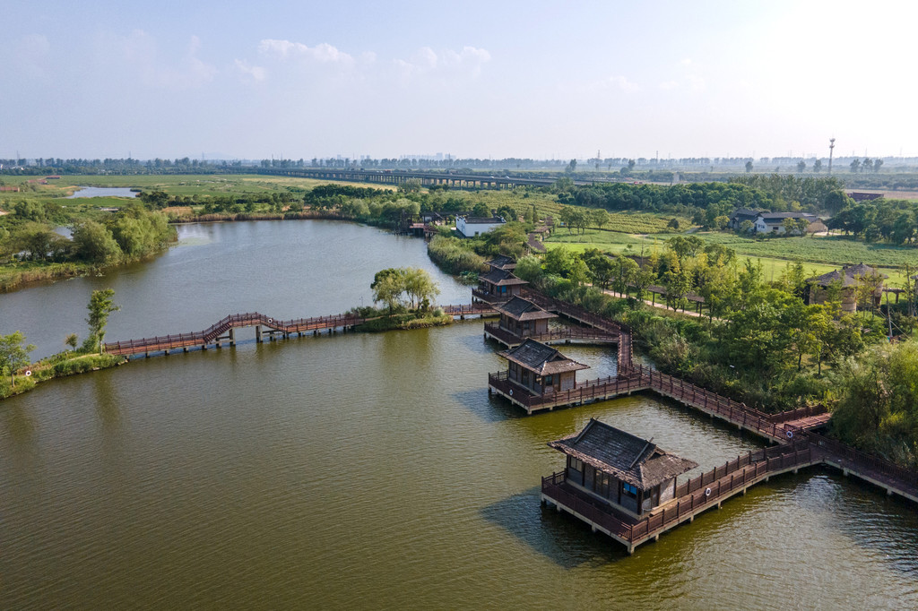进入景区后,最先看到的一大片水面,为整个杭州湾海上花田的精华所在,沿湖设有环湖游览步行道,湖中有石桥、木桥横跨两岸,无人机视角下的杭州湾海上花田景区格外的壮美,尤其是那湖中的长堤、小桥,使得湖面景观更加的别致,其景致甚至可以与杭州西湖相媲美。