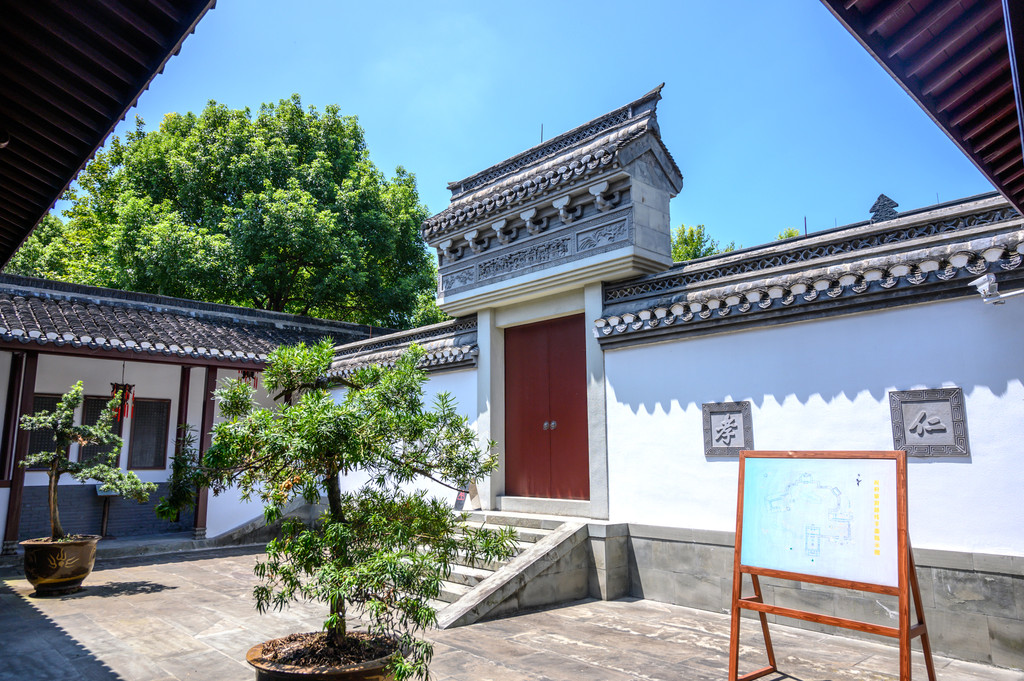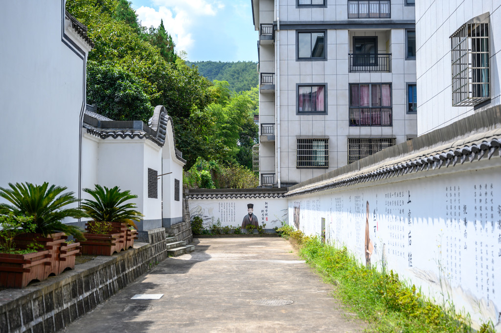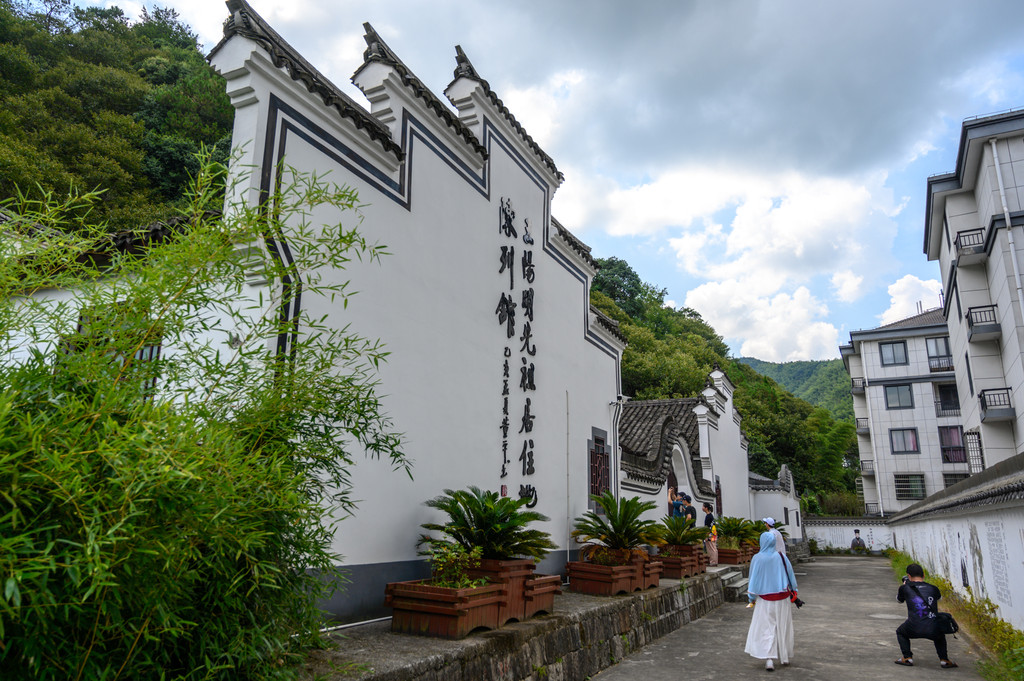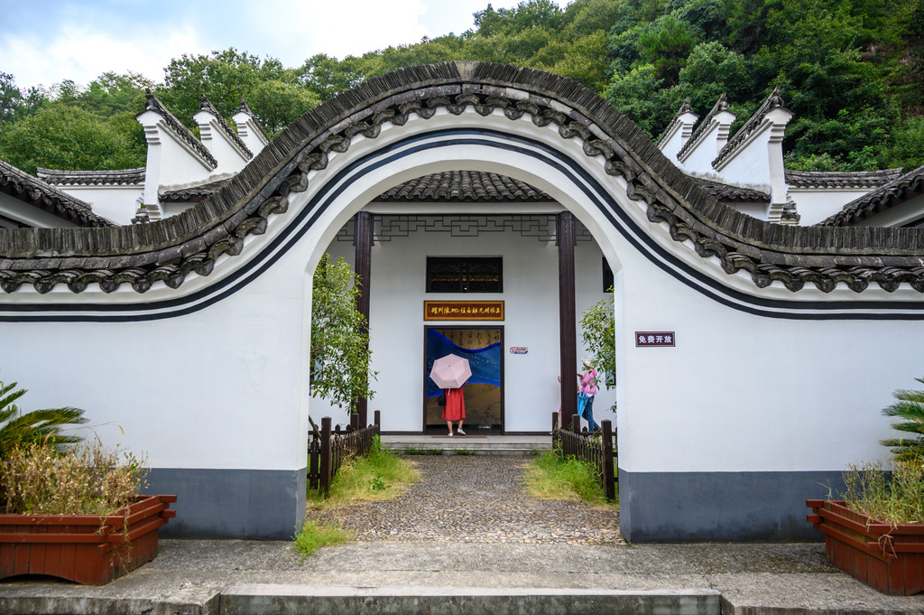 眼前这座粉墙黛瓦的建筑就是王阳明先祖居住地陈列馆,外门设计十分精致巧妙,宛若一座“虹桥”一般横跨门前,内部房屋马头墙高耸,院落为鹅卵石铺砌而成,营造了一幅古香古色的画风,让人眼前一亮,留下了深刻的印象。