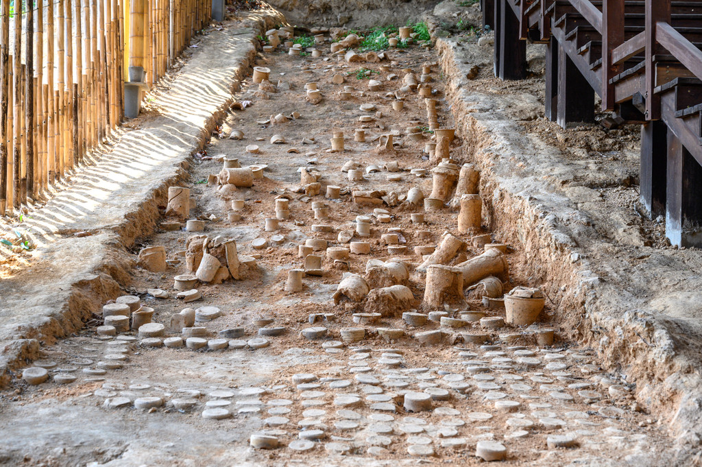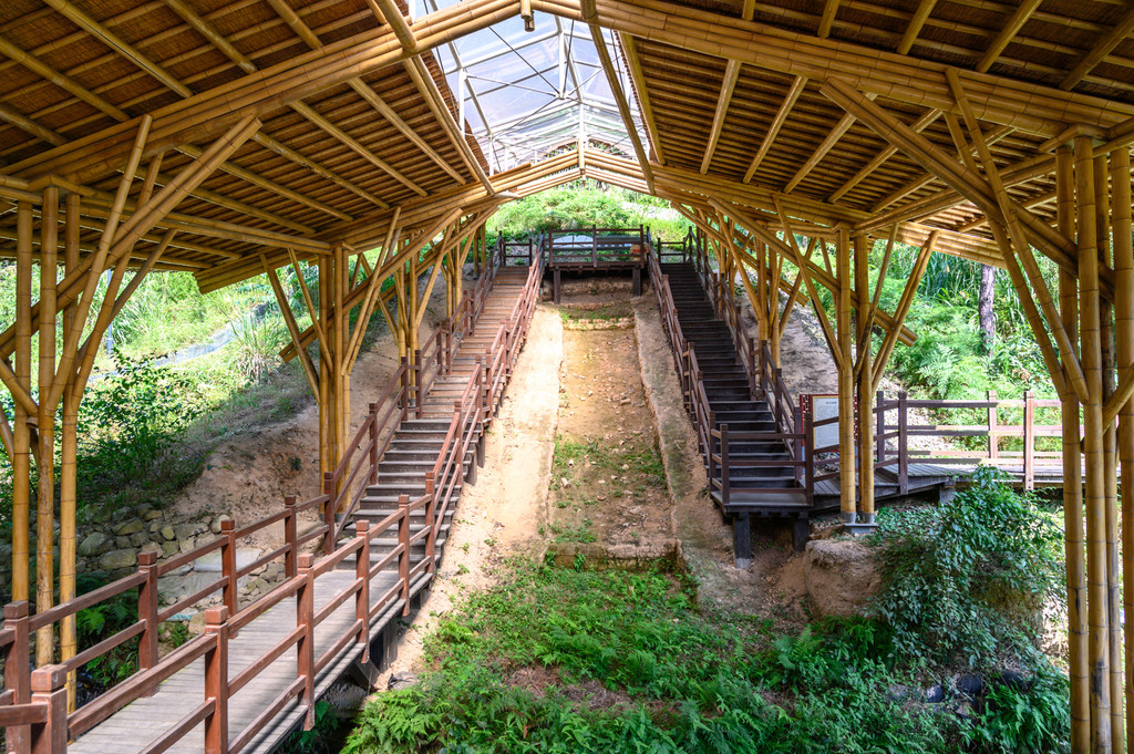 眼前所看到的这座大棚就是禁山窑址展示棚,于2014年发掘,发掘面积约800平方米,共考古发掘了3条窑床及大量的青瓷器,这3座窑均是长条形龙窑,分别是东汉、三国和西晋时期的窑炉。