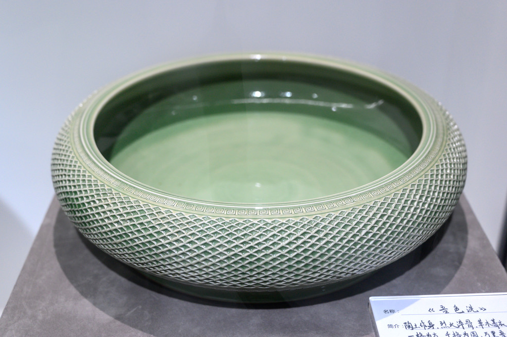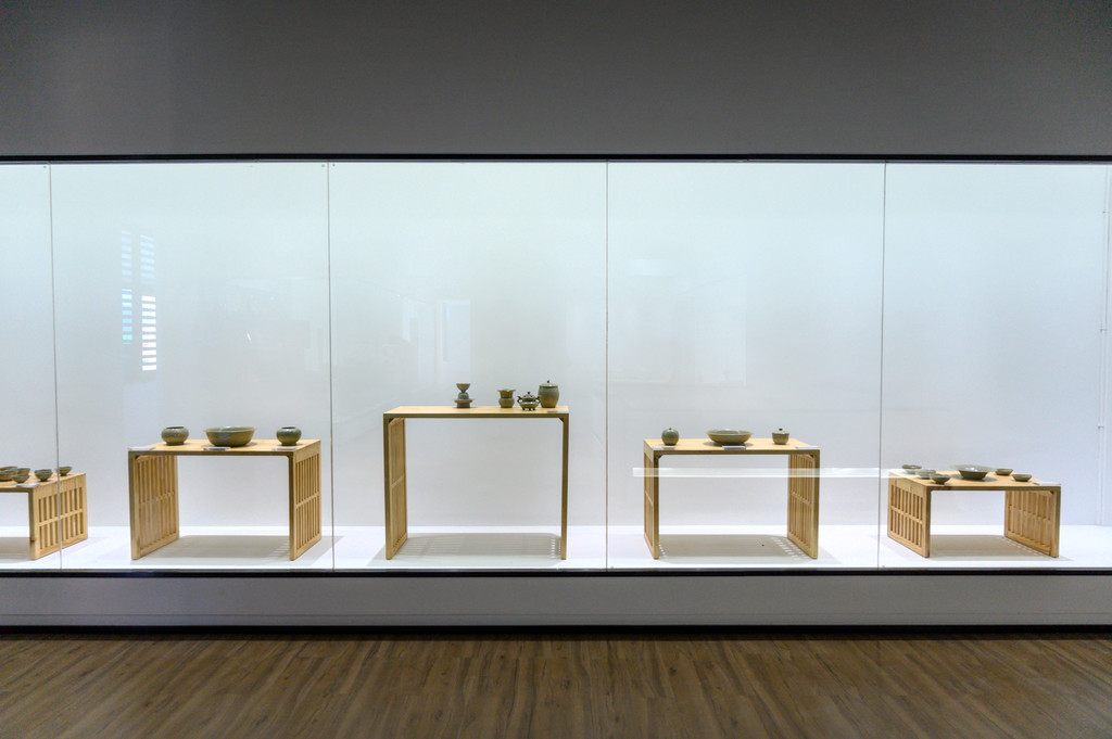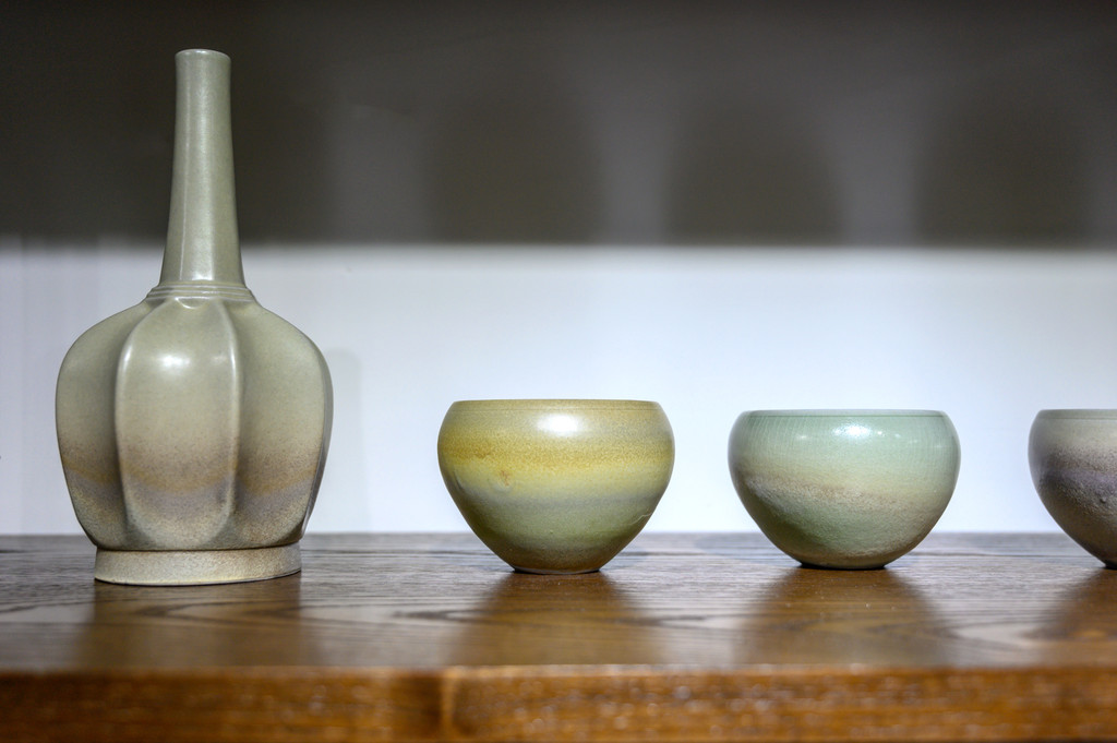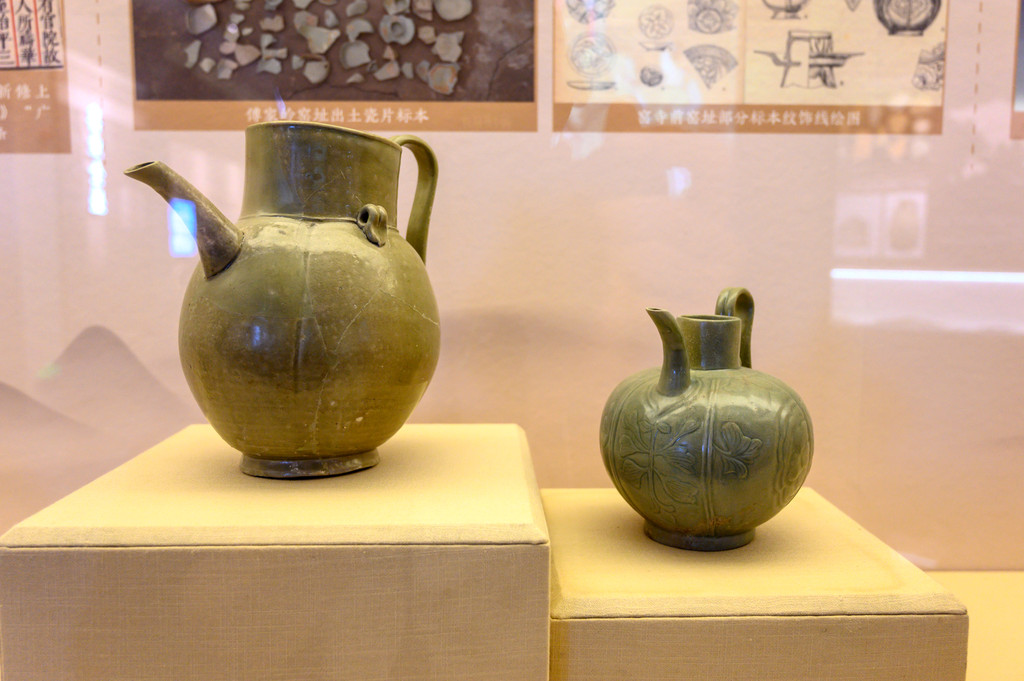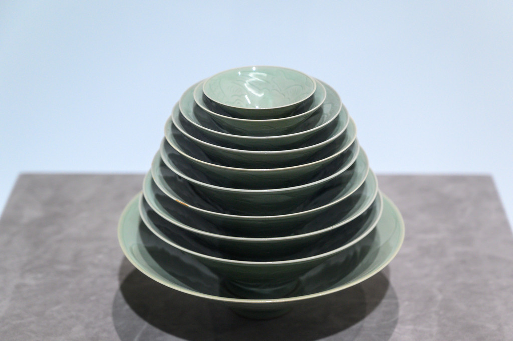 眼前所看到的瓷器就是修复后的,陈列在此为大家所欣赏,可以看出这些瓷器施釉均匀,釉色青翠莹润,为瓷器中的佳品。