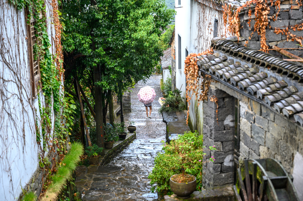 欣赏过千年梯田后,拐个弯步行约2分钟即可来到“东澄古村”,整个古村依山势而建,四周为葱郁的青山所环绕,雨后的山间云雾缭绕,宛若仙境一般。古村基本上保持着原始的模样,没有大规模的开发,村落间流水潺潺、石阶曲折、环境幽静。
