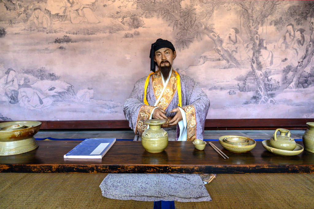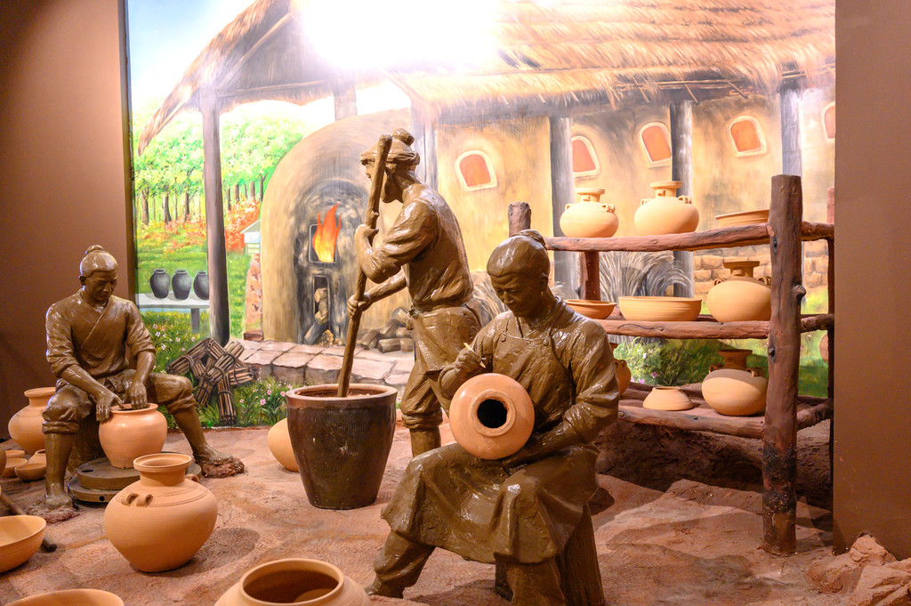 丰富的人物雕塑,向大家生动地讲述了越窑青瓷的制作工艺及过程,越窑始于汉,昌盛于唐代,当时生产出来的瓷器已经远销伊朗、巴基斯坦、日本、埃及等国家,受到世界范围内的广泛关注及赞誉。